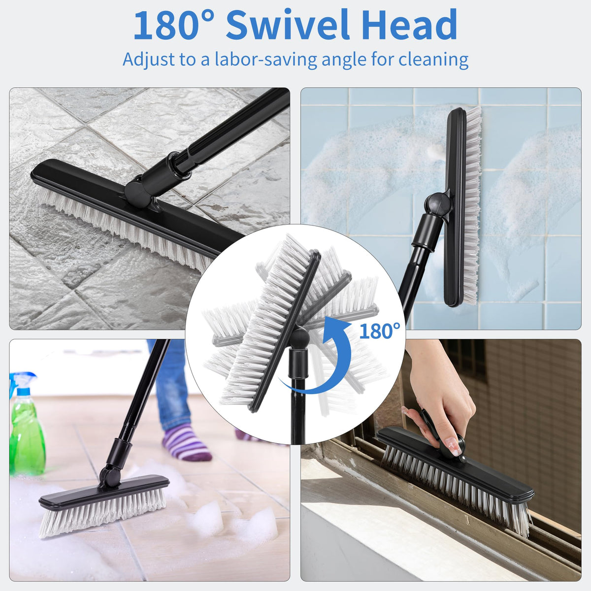 Jehonn 2 Pack Grout Brush With Long Handle 50 Inches, Swivel Floor Scrub Broom, Tile Scrubber For Cleaning Bathroom Shower Corner Kitchen Patio Baseboard
