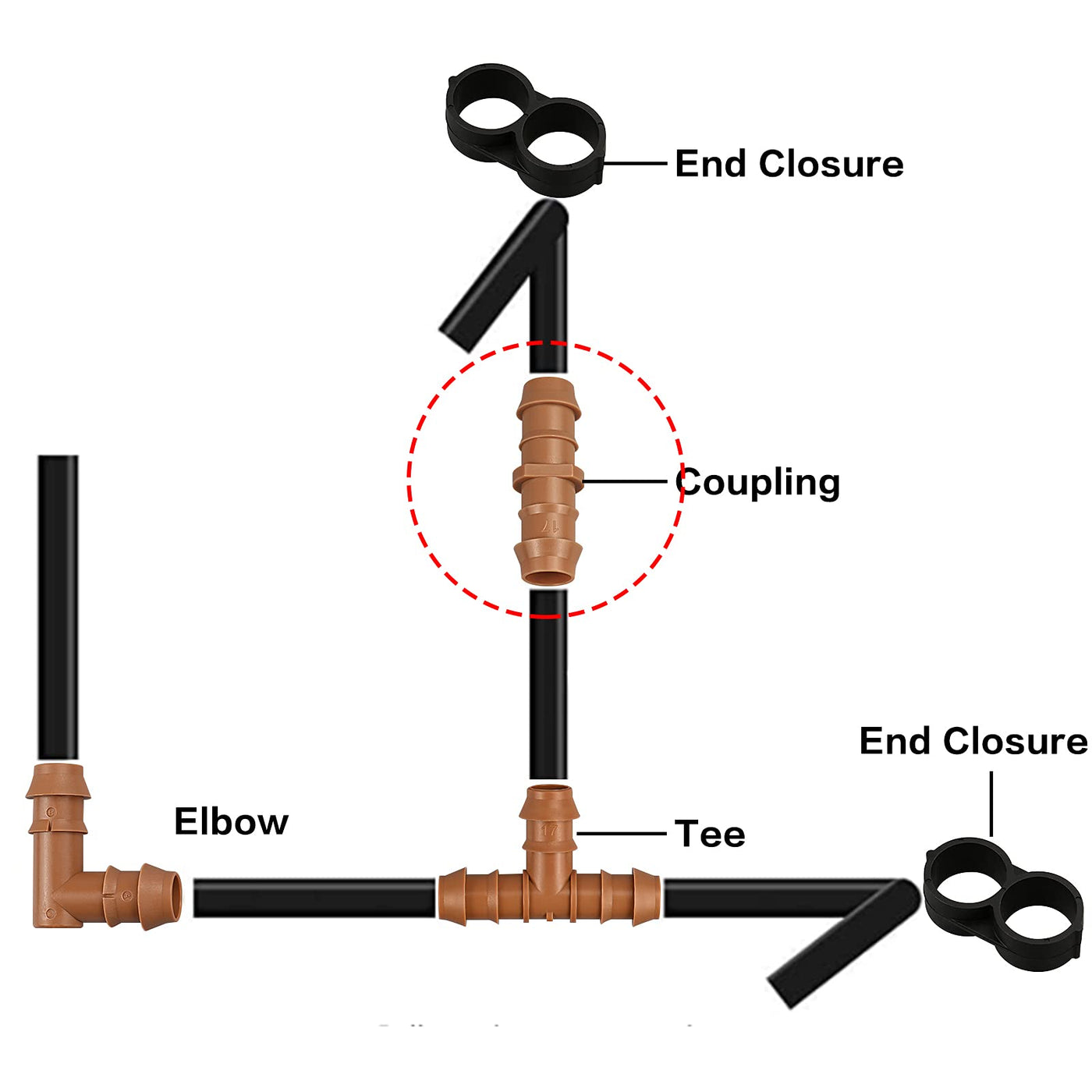 JOYPRO 28 Pieces Irrigation Coupling Fittings for 1/2 Inch Irrigation Tubing This iRunning 40 pieces 1/2” barbed coupler fittings are compatible with universal 1/2 inch tubing or drip lines.
