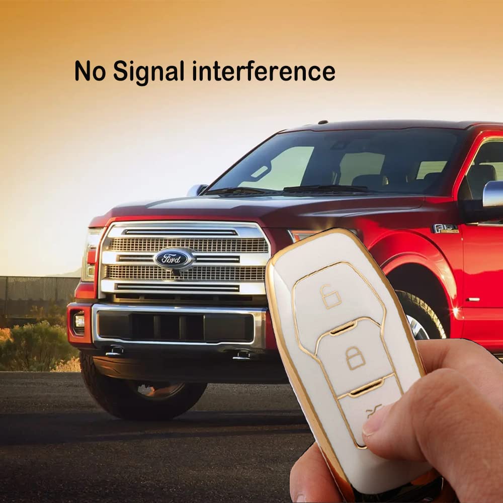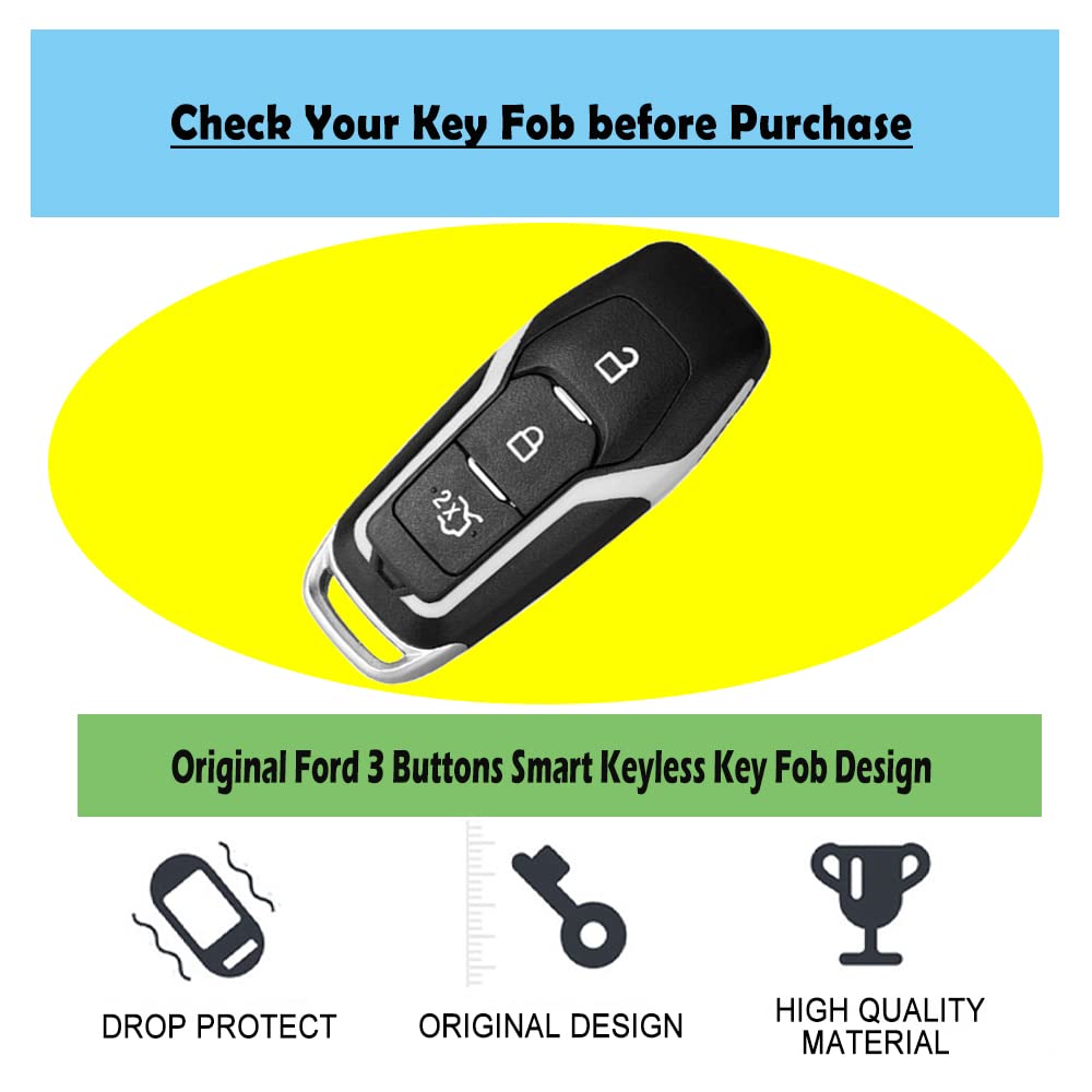 ??Compatible Model:Ford 5 Buttons Fusion Explorer Escape Edge Mustang F150 F250 F350 F450 F550 Lincoln MKZ MKC MKX Smart keyless entry remote control key. | ??High Quality Material:Soft TPU Material with strong ductility,tight fit with key fob,sleek bright appearance bring a New face to your lovecar Key fob,easy to install key fob Skin without tool,long as new. | ??Original Key Fob design:Perfect Adaption,all buttons,ports,Unobstructed signal design,Nice look without compromising on protection,Portable metal alloy key chain, beautiful and exquisite, safe and anti loss. | ??Full Protection:Protect your smart key fob from drop damage, marks, dust, scratches,offer a unique stylish look for your key fob | ? Even if the model of the car is the same, the car key might be different based on the different year of manufacturing,so please Double Check your Key Fob with the adapter key fob picture at left before Purchasing(CHECK THE SECOND PICTURE ABOVE,MAKE SURE THE SHAPE OF YOUR KEY)