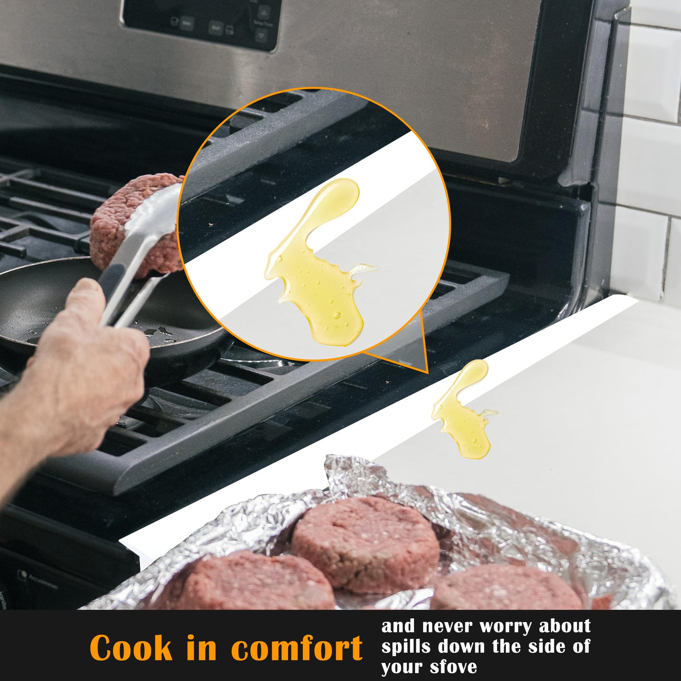 Easy to Cut Soft and flexible silicone, conforms to stove and counter surface perfectly, even they are uneven. And the stove gap covers can easily cut to fit non-standard size for other place. The extra long 30 inches size make it can be cut to 21, 25 inches or any other length to meet your stove and counter,appliance space,window fridge desk appliance oven wash machine gap .