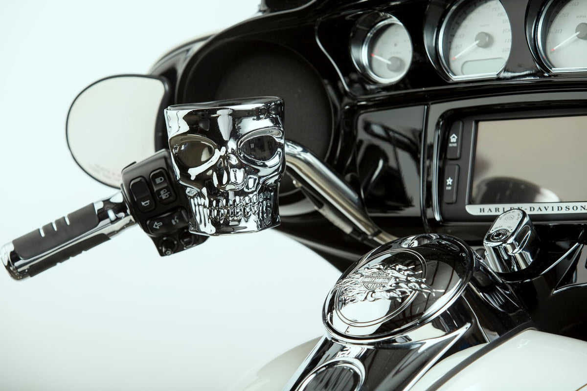 The Skull Custom Kaddy Is A Metal Construction With Triple Plate Chrome. Comes With Metric And American Standard Bolts, Easily Detachable Cup, Chrome Spring Clip With Rubber Drink Retainer.Mount On: Clutch Or Brake Perch Mounting, Bolts Vertical Spacing Center To Center At 1 1/16'' To 1 1/2'' Apart To Accept Included Metric And American Standard Bolts.Fitment: Harley: All Harley Models, Recommended For Models With 6 Gallon Tanks For Optimum Tank Clearance. Honda: All Gl 1500/1800 Models, All Vtx 1300/1800 Models, Shadow 750 Aero, Ace & Spirit, Shadow 1100 Kawasaki: All Vulcan 900 Models, Vulcan 1500/1600 Including Mean Streak Yamaha: All Road Star & Warrior Models, All Star Models, All Venture Models.