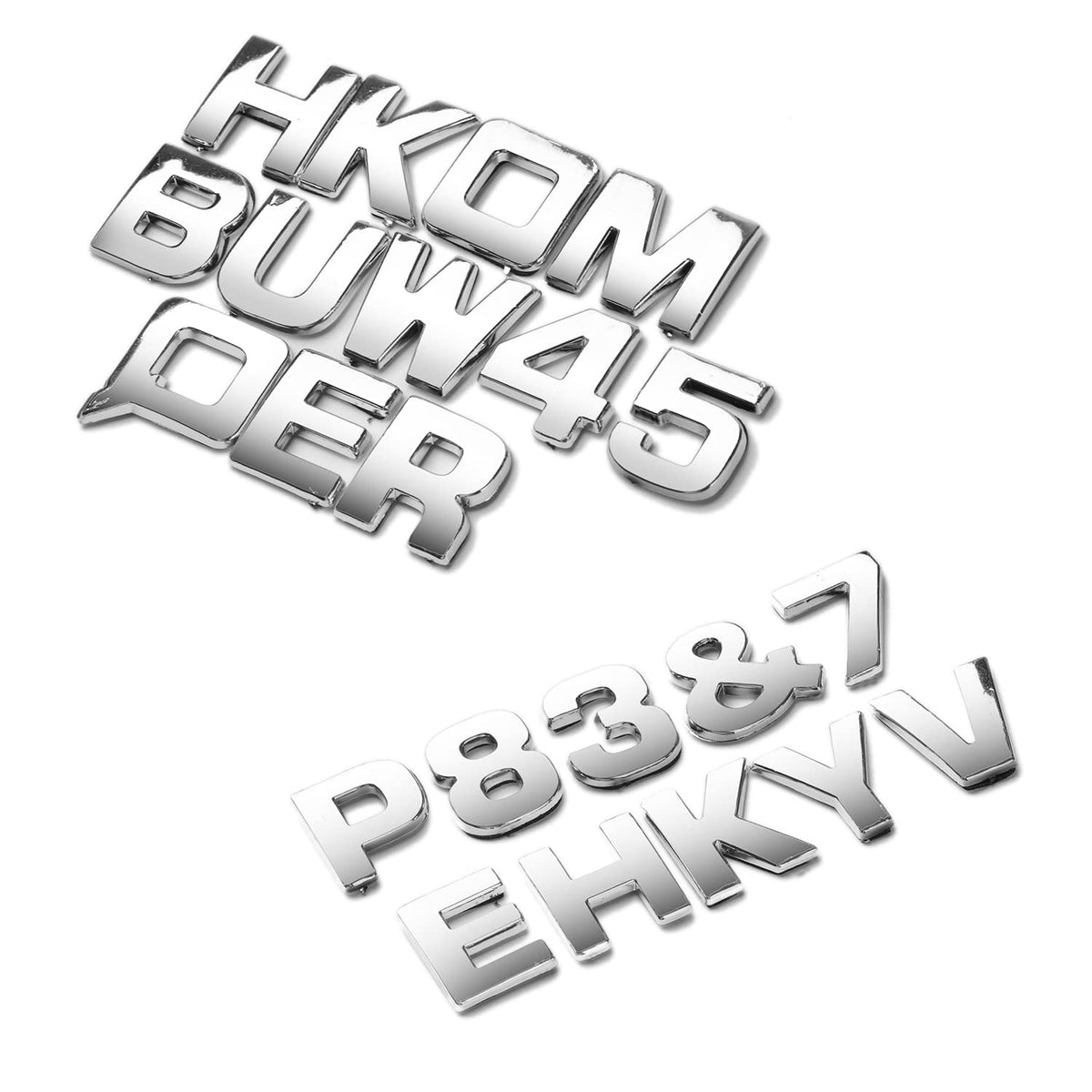 Q: How many pieces are included in the Lamoutor car emblem letters set?A: The set includes a total of 43 pieces, which consist of 26 alphabets, 10 numbers, and 7 symbols.
