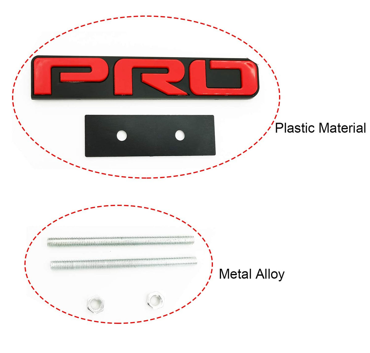 Q: What materials are used in the TRD PRO Front Grille Emblem?A: The emblem is made from high-quality ABS plastic for durability, while the screws are made from zinc alloy, ensuring a strong and long-lasting attachment.