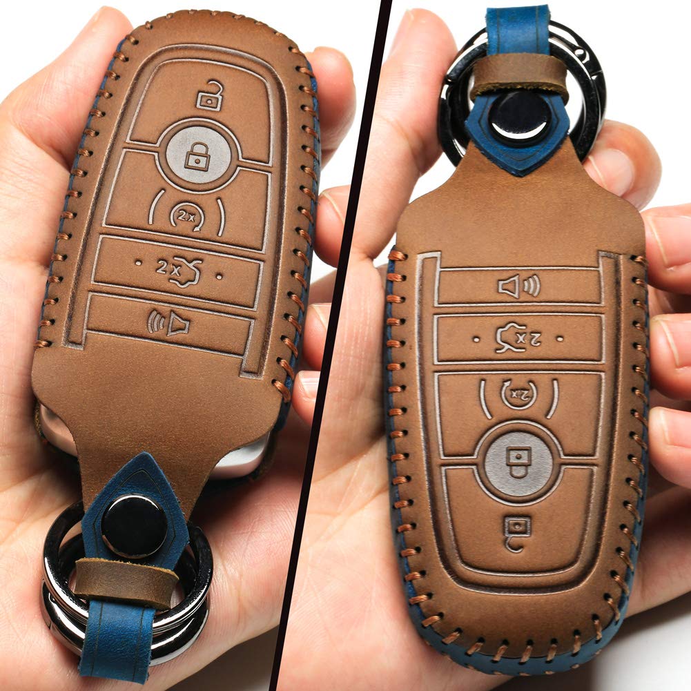 Appliable To: 2017?2018?2019?2020?2021?2022?2023 Ford Fusion Explorer Expedition Escape Edge Raptor F-150 F-250 F-350 F-450 F-550 Mustang 4/5 Button smart key (Note: Only for Push Button Start) Exquisite small gift box packaging: 1 key case (including leather case and metal hanging buckle), Note: Even though the car model is the same, but the car key might be different based on the different year of manufacturing, so please Double Check your Key Fob with the picture before Purchasing It's not just a simple car key case, it's also an accessory you that you can wear around. Good car keys matching good key cases
