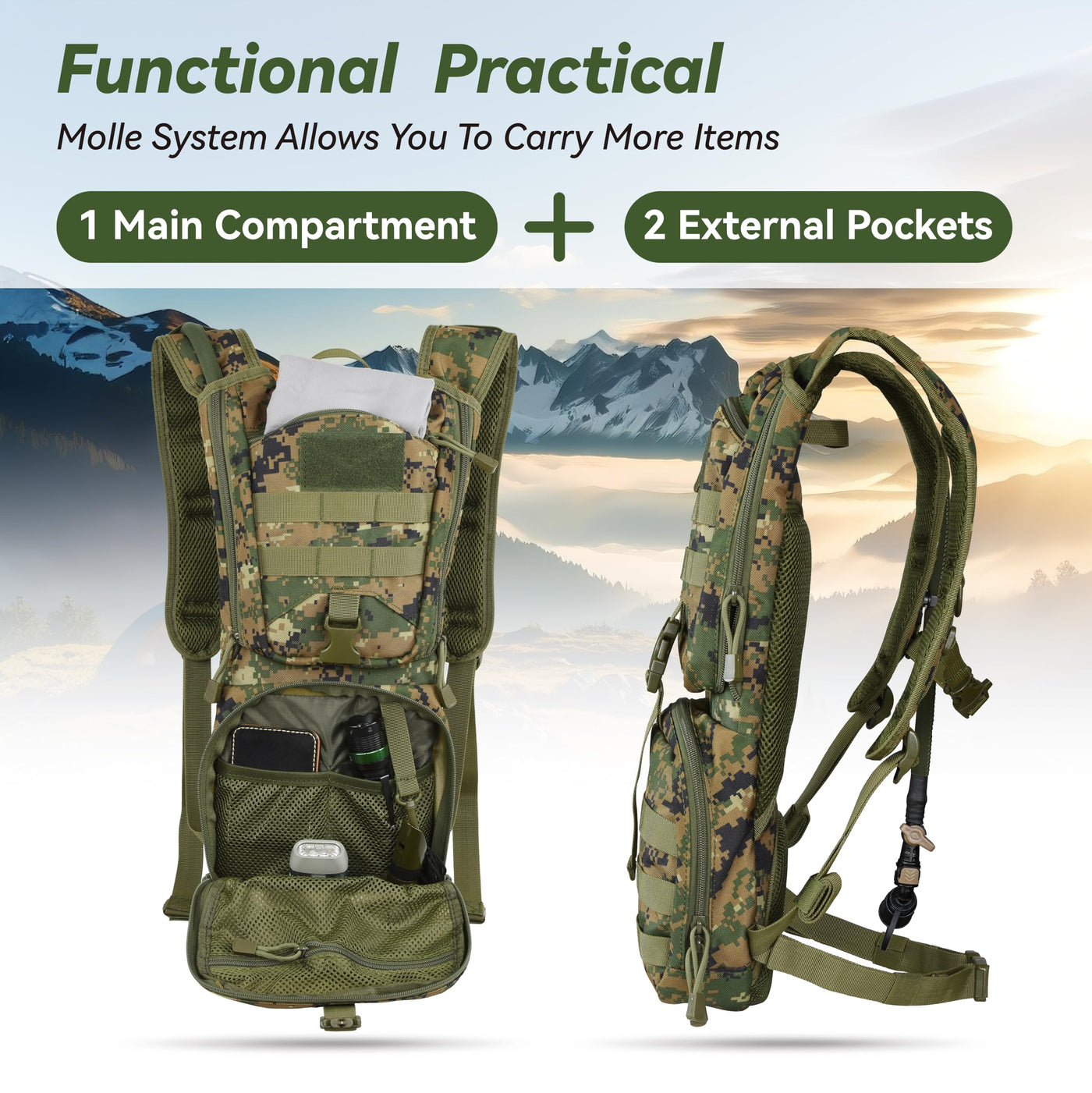 Marchway Tactical Molle Hydration Pack Backpack With 3L Tpu Water Bladder, Military Daypack For Cycling, Hiking, Running, Climbing, Hunting, Biking (Digital Woodland)