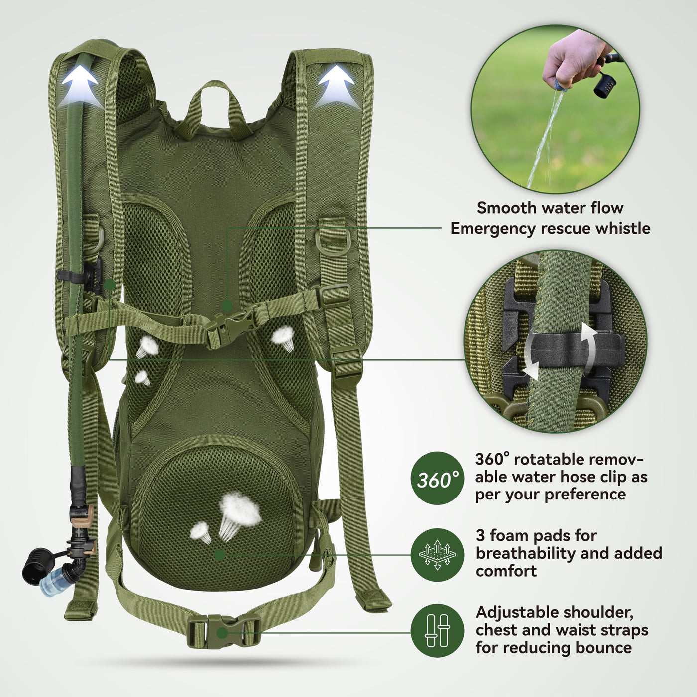 Marchway Tactical Molle Hydration Pack Backpack With 3L Tpu Water Bladder, Military Daypack For Cycling, Hiking, Running, Climbing, Hunting, Biking (Green)