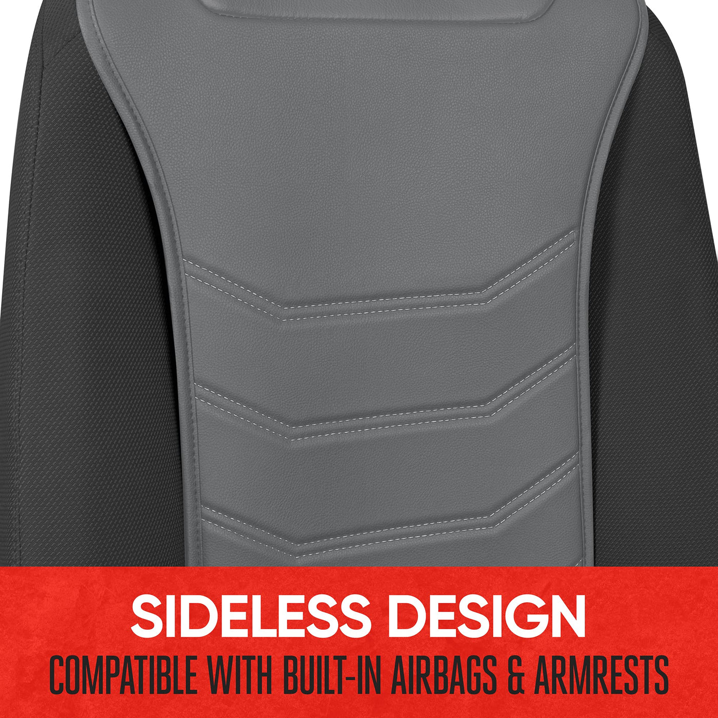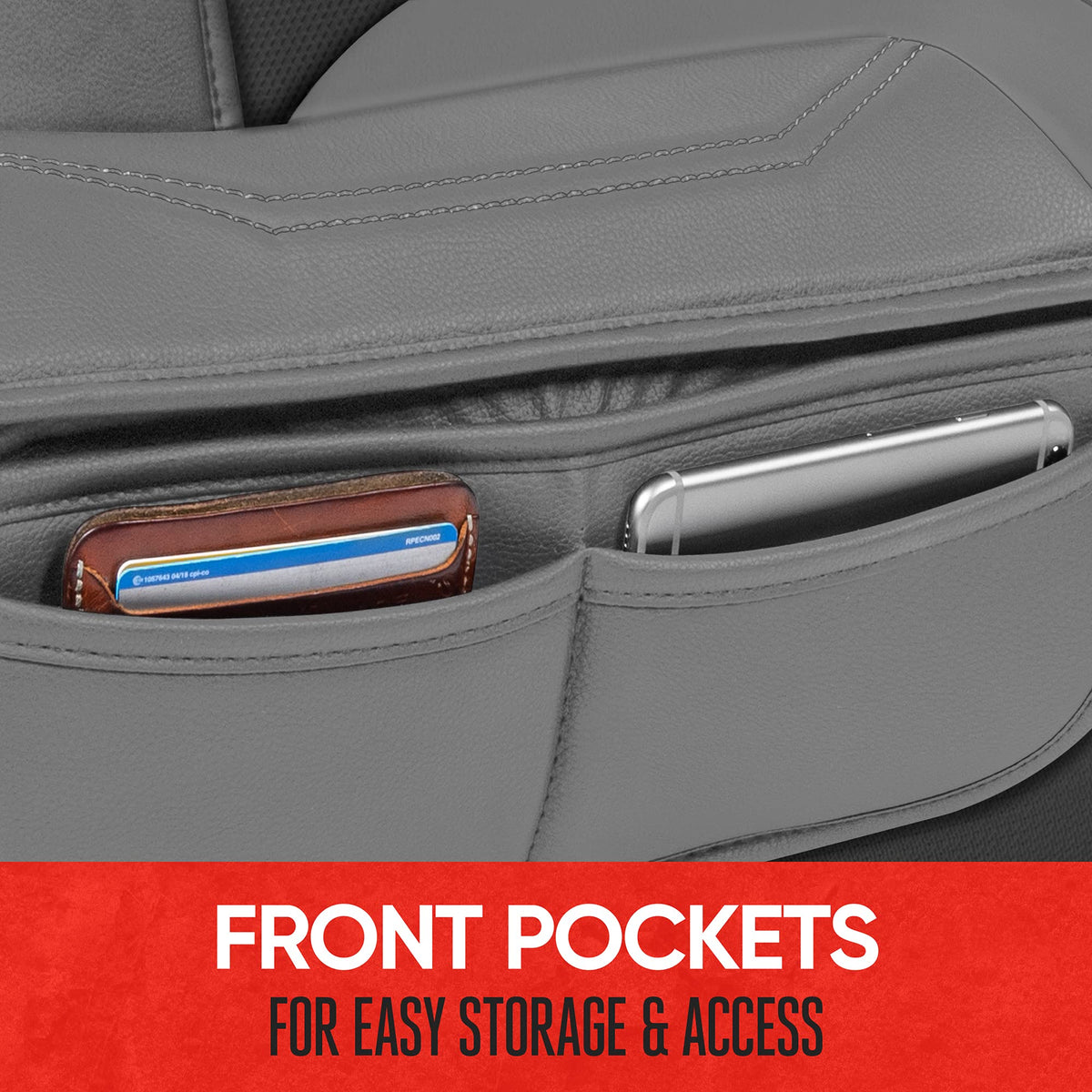 Motor Trend Luxefit Solid Gray Seat Covers For Cars Trucks Van Suv (2 Pack), Premium Faux Leather Car Seat Covers, Easy To Install Automotive Seat Covers With Storage Pockets, Fits Most Vehicles