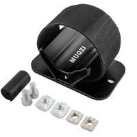 Q: What accessories are included with the MUQZI Bike Rear Wheel Rack?A: The package includes 1 x Bike Rear Wheel Mount, 1 x Binding Strap, 2 x Fixed M8 Screws, and 2 sets of T-nuts (5.8mm and 8.7mm). These accessories ensure a complete installation and optimal performance.