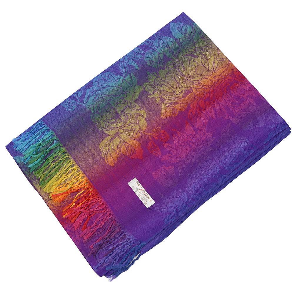 Neelamvar Fashion Colorful Flowers Jacquard Cotton Pashmina Women Wrap Shawl Tassels Scarves 75' X 27.5' (Thm08-05)