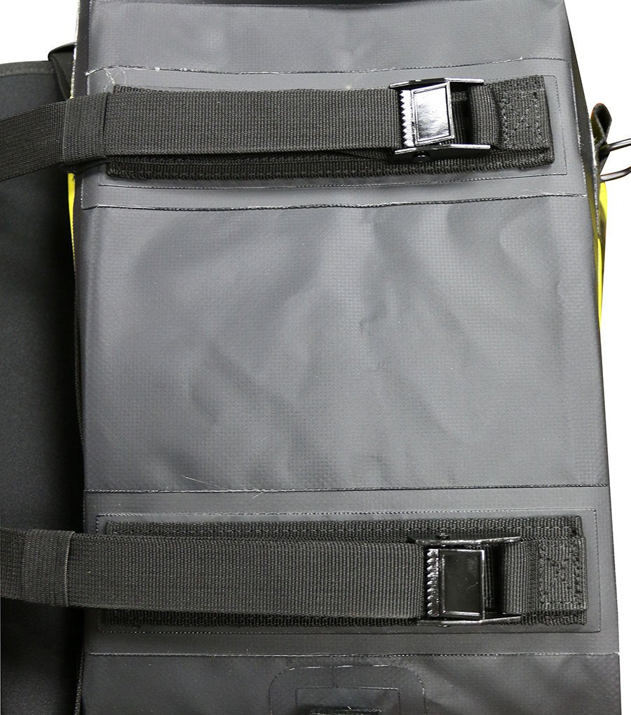 LIFETIME WARRANTY. All saddlebag mounting hardware is aircraft grade aluminum. NO breakable plastic buckles. 100% waterproof motorcycle saddlebags. All seams are electronically heat welded Includes 2 lightweight saddlebag liners to easily remove and pack contents. Removable stiffeners allow the saddlebags to hold their shape when empty. Firm internal back plate helps support saddlebags. Replaceable pads helps protect saddlebags from rubbing on your motorcycle rack. Compression straps can also be used to mount optional Nelson-Rigg dry roll bags. Each saddlebags securely mounts to your motorcycle using 4 quick release cam buckles and double pull straps. Made from waterproof and durable 24oz tarpaulin PVC. Outer material cleans easily. Easily mounts to Motorcycles, PWC and Snowmobiles. Available in Black (SE-3050-BLK). Main compartment measures: 15"L x 8"W x 14"H. Holds 27. 53 Liters per side.