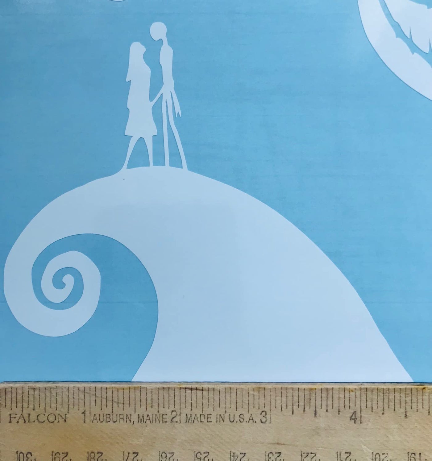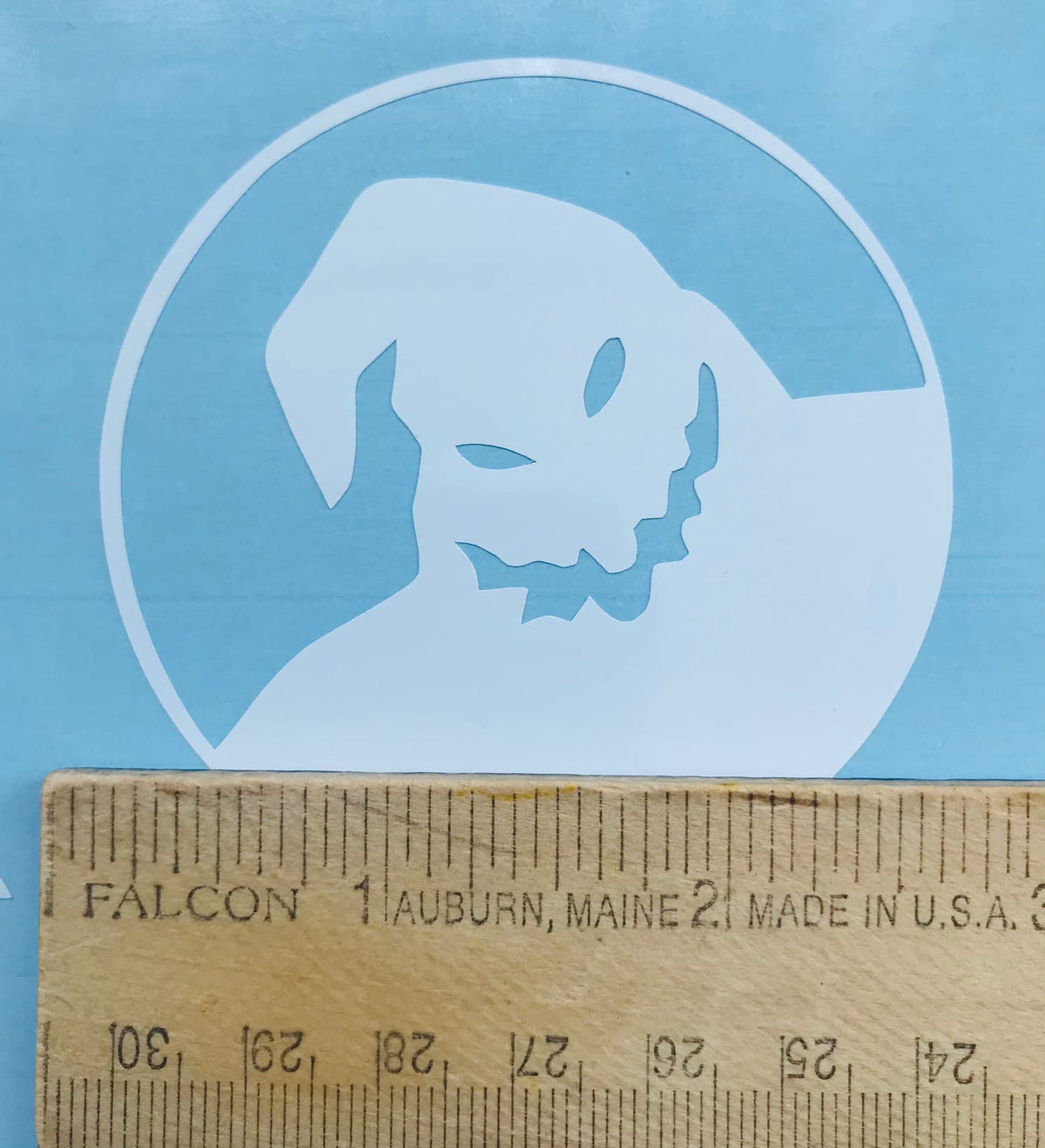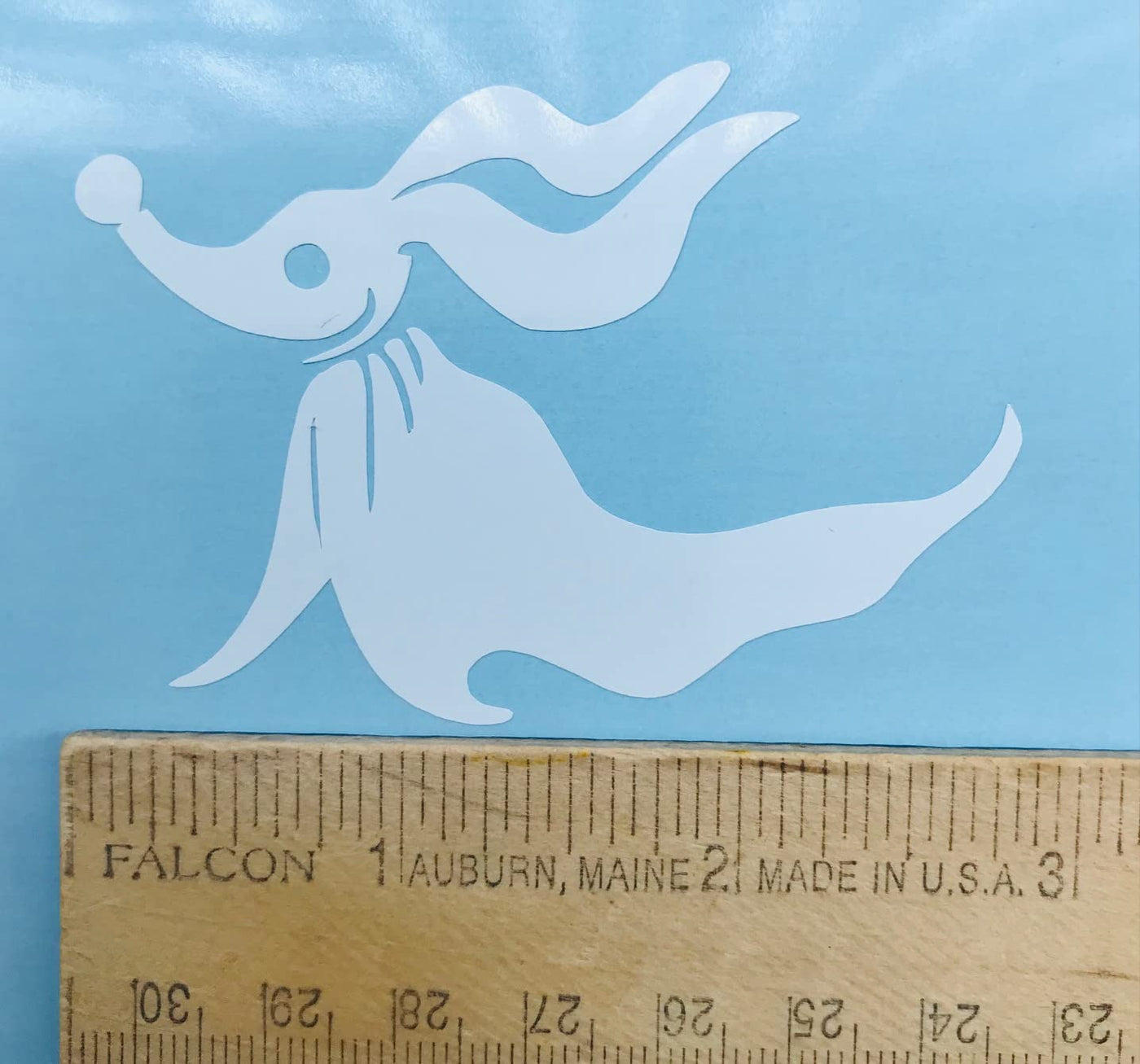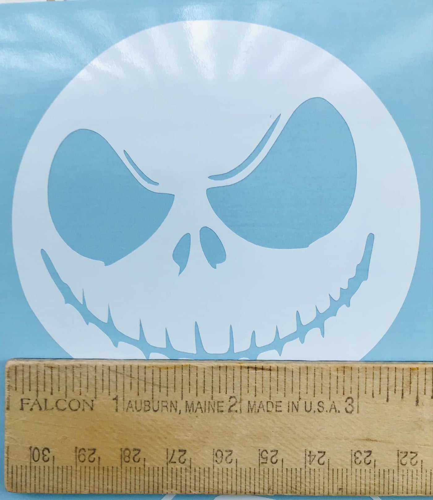 Q: What size is the Jack Skellington decal?A: The decal measures 8 inches in size, although the image may appear larger to show details. Please refer to the actual dimensions for accurate sizing.