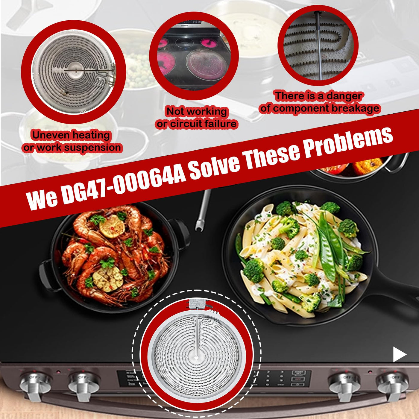 Q: What improvements does the DG47-00064A offer compared to previous models?A: The DG47-00064A features an upgraded composite metal material for enhanced durability and a longer service life. Additionally, it offers improved heating efficiency with a dual radiation range for faster cooking times.