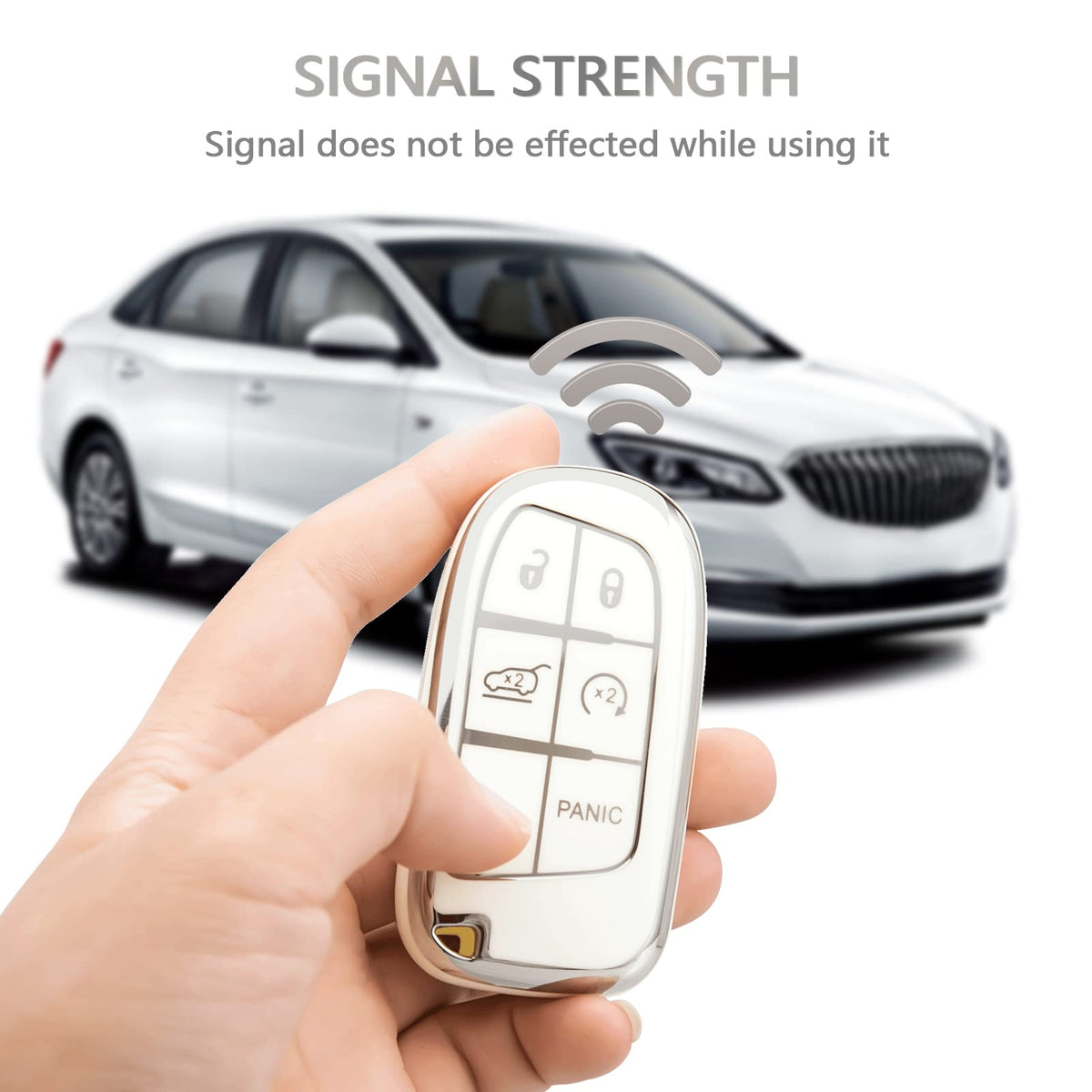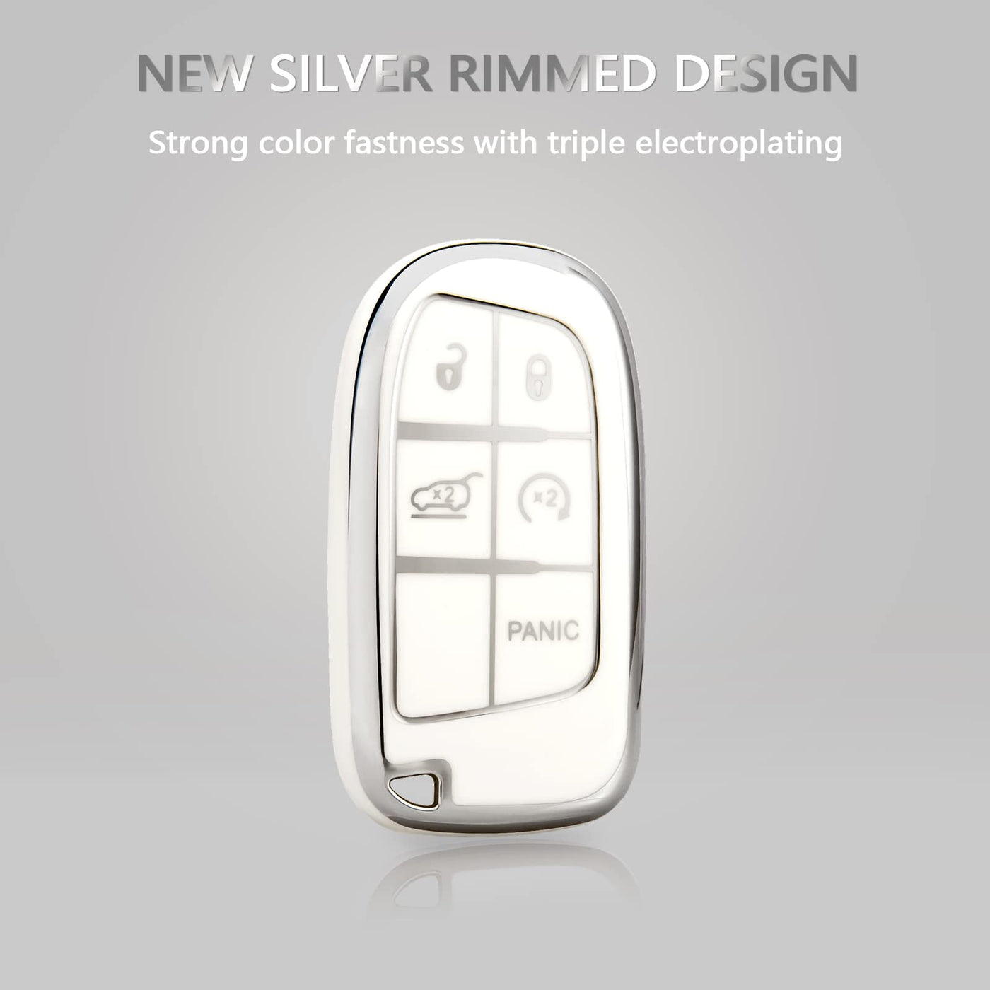 Offcurve For Jeep Dodge Key Fob Cover, Car Key Cover Case For Jeep Grand Cherokee Wrangler Compass Renegade Patriot Grand Comander 3 4 5 Buttons Smart Key Car Accessories Holder Protector, White