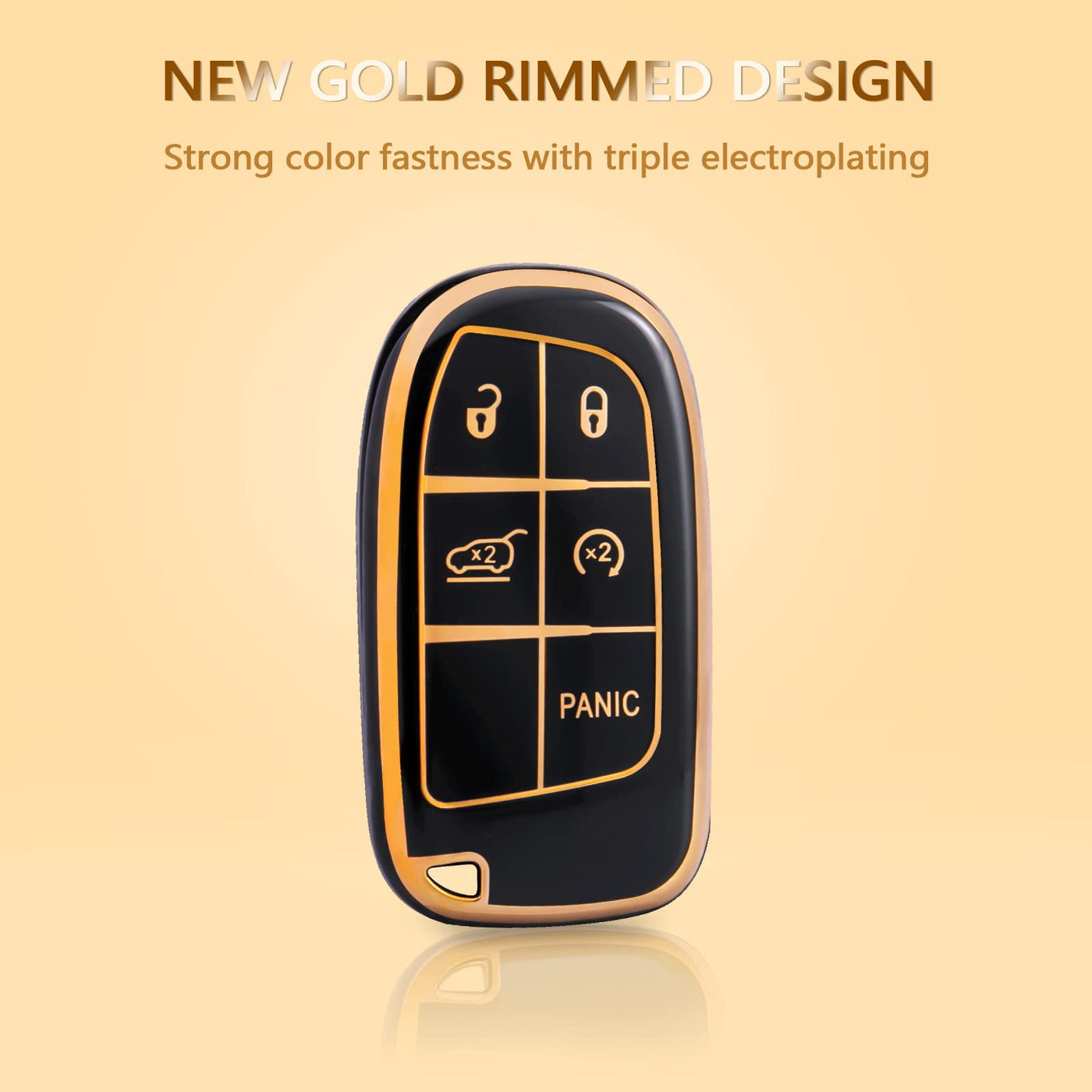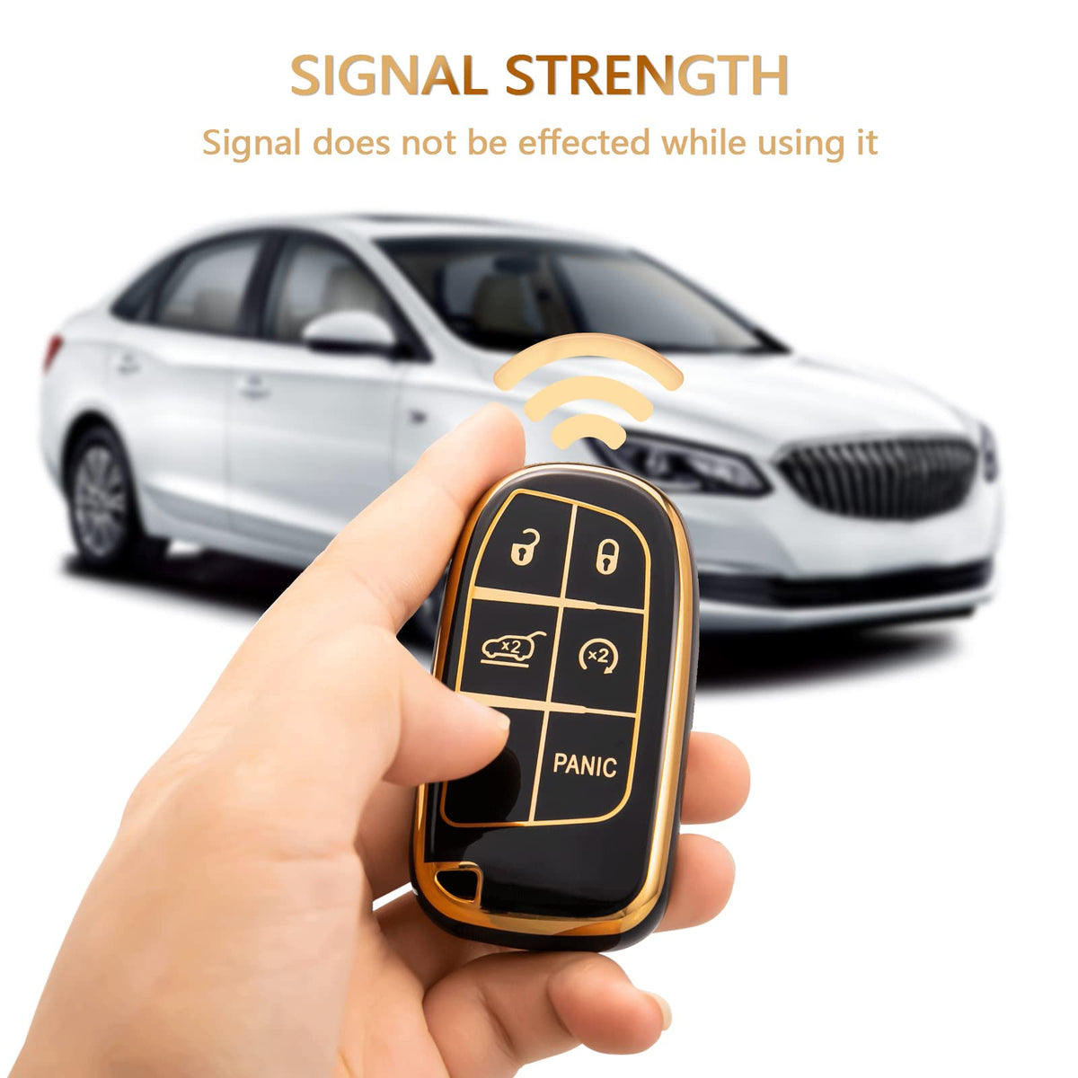 Offcurve For Jeep Dodge Key Fob Cover, Soft Tpu Protection Key Cover Case Compatible With Jeep Grand Cherokee Renegade Chrysler 200 300 Dodge Journey Fiat Durango Challenger Smart Key Holder, Black