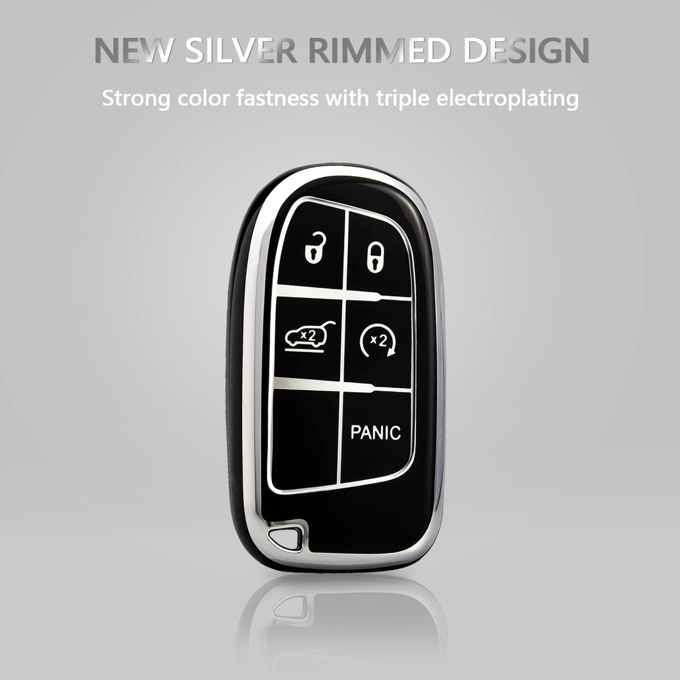 Offcurve Key Fob Cover For Dodge Jeep Car Key Case For Jeep Grand Cherokee Renegade Dodge Challenger Charger Dart Durango Caravan Ram Chrysler 200 300 Remote Smart Key Accessories, Black