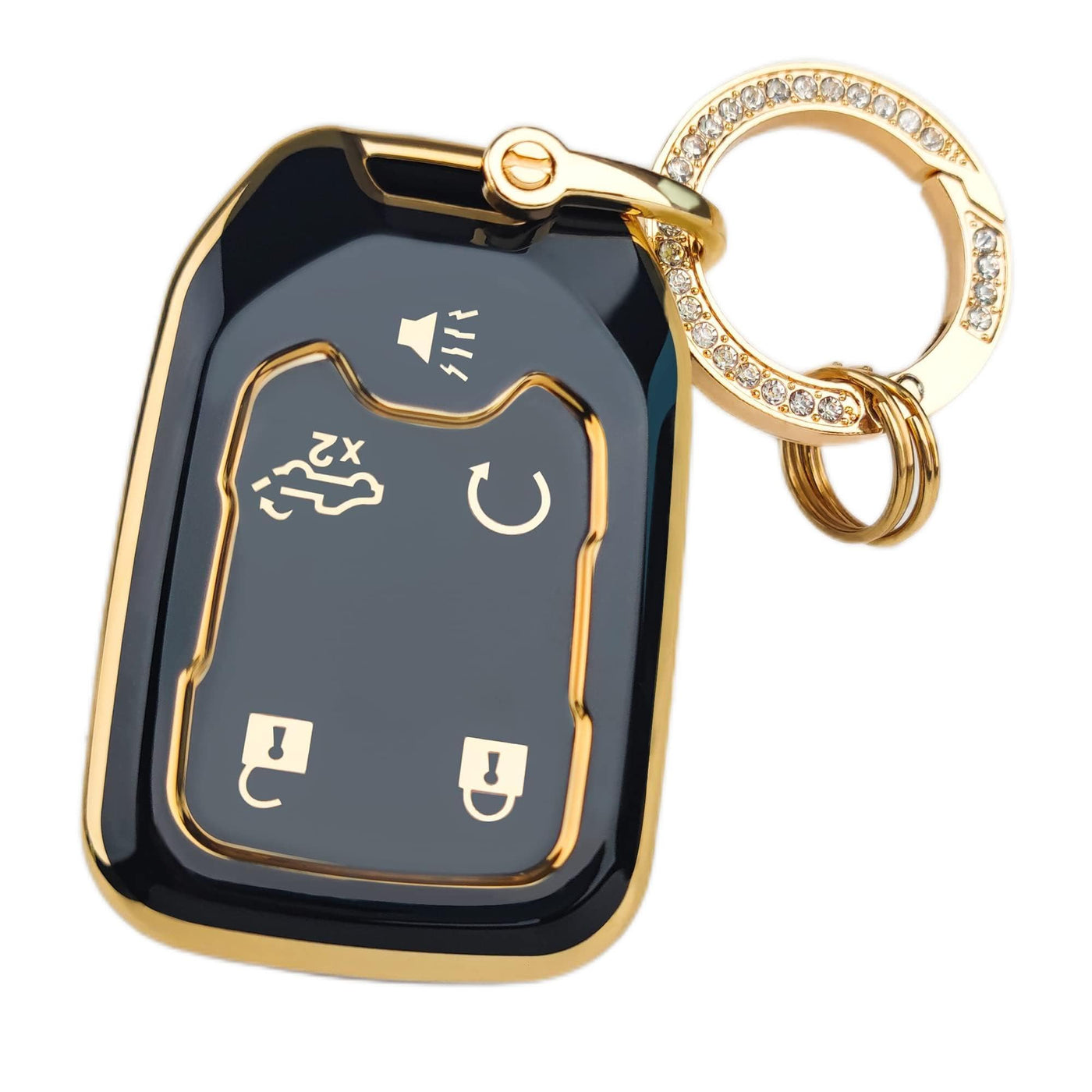 Ollen 5-Button Tpu Key Fob Cover, Fit For Gmc Acadia 2017-2025, For Terrain 2018-2025, For Sierra 2019-2025, For Chevy Silverado 2019-2022, Full Protection Soft Tpu Key Case, With Bling Ring, Black