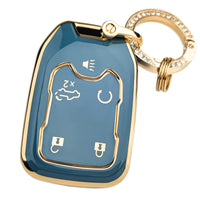 Ollen 5-Button Tpu Key Fob Cover, Fit For Gmc Acadia 2017-2025, For Terrain 2018-2025, For Sierra 2019-2025, For Chevy Silverado 2019-2022, Full Protection Soft Tpu Key Case, With Bling Ring, Blue