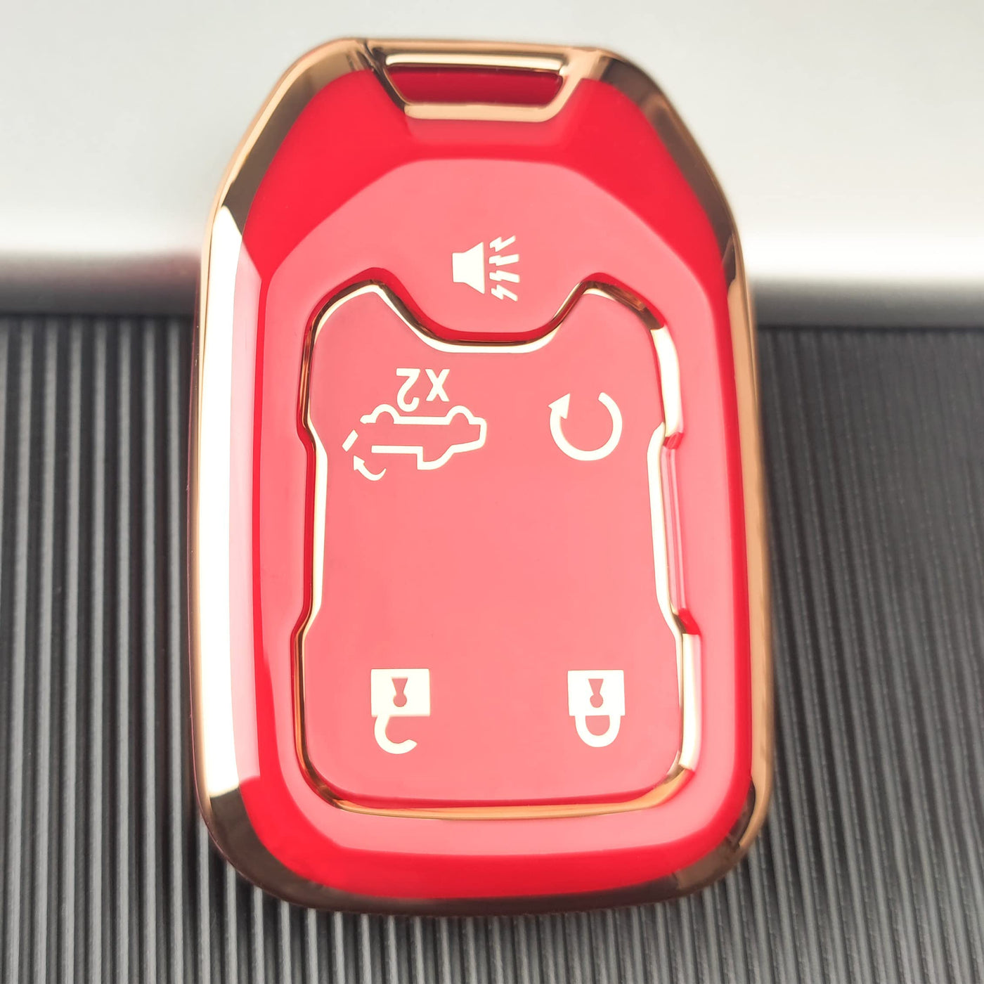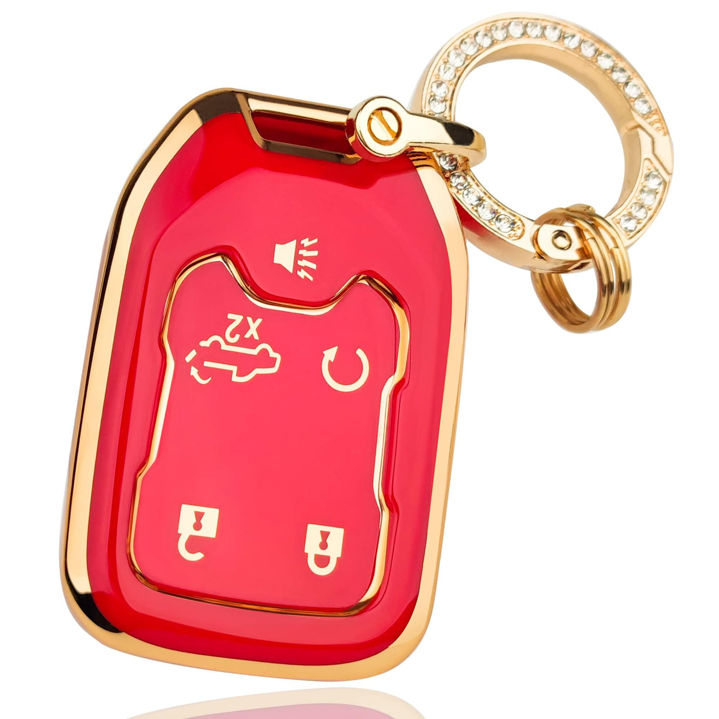 Ollen 5-Button Tpu Key Fob Cover, Fit For Gmc Acadia 2017-2025, For Terrain 2018-2025, For Sierra 2019-2025, For Chevy Silverado 2019-2022, Full Protection Soft Tpu Key Case, With Bling Ring, Red