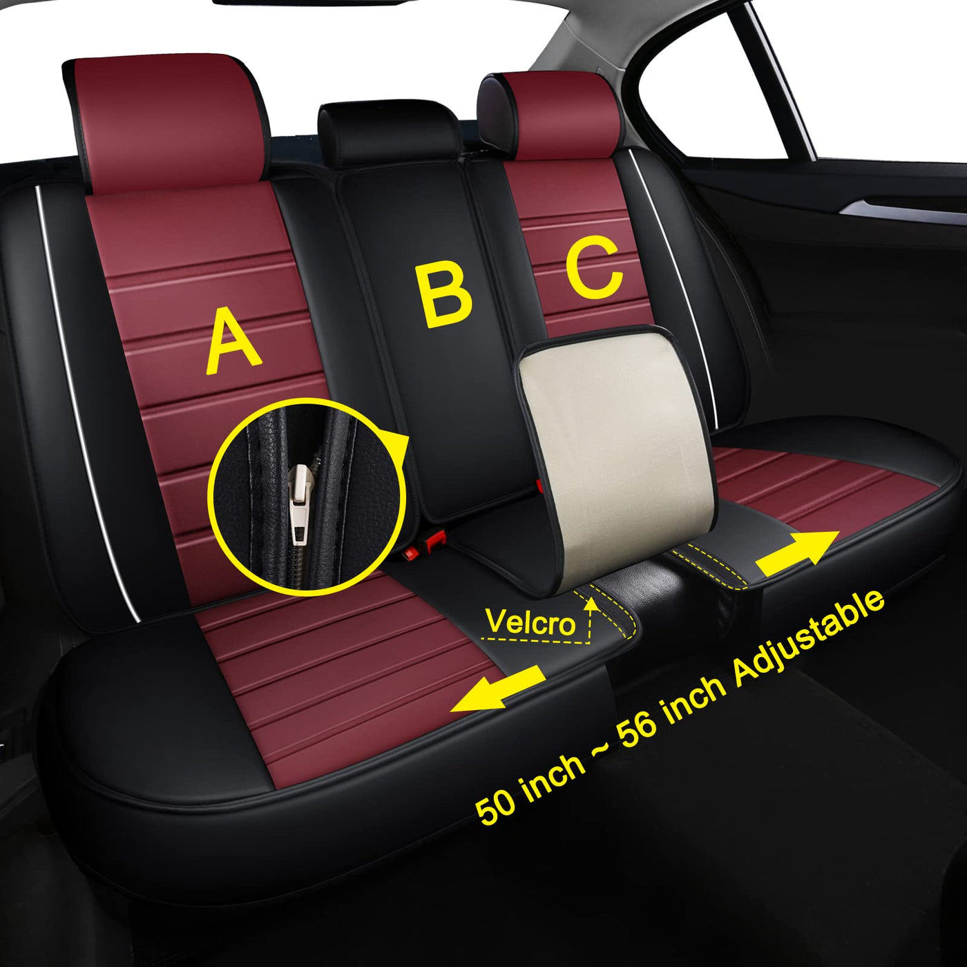 Otoez Car Seat Covers Full Set, Leather Automotive Seat Cover For Cars Suv Truck Sedan, Universal Car Interior Cover Protector 5 Seats, Waterproof Front & Rear Seat Cushion (Red)