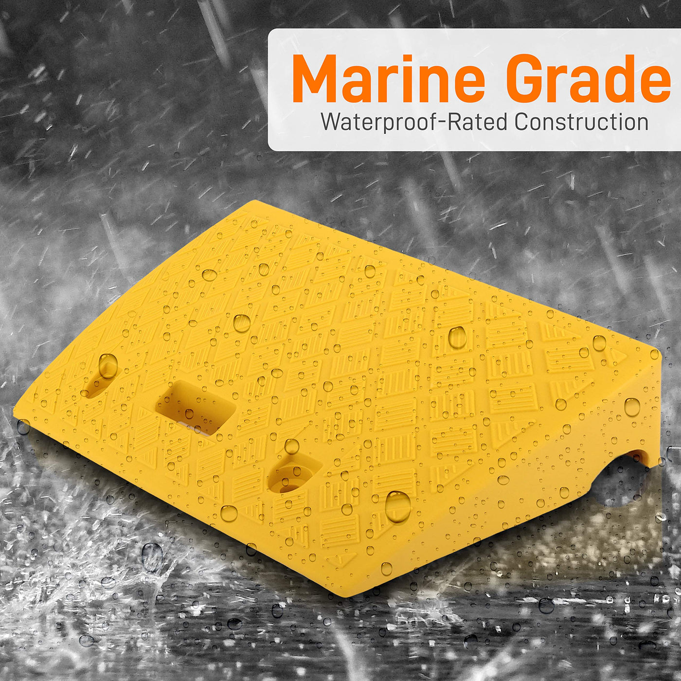 Q: Can these ramps be used for wheelchairs and scooters?A: Yes, these curb ramps are designed for multipurpose usage, providing access for wheelchairs, scooters, and other mobility devices over curbs and uneven surfaces.