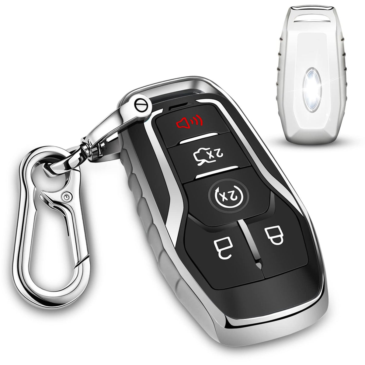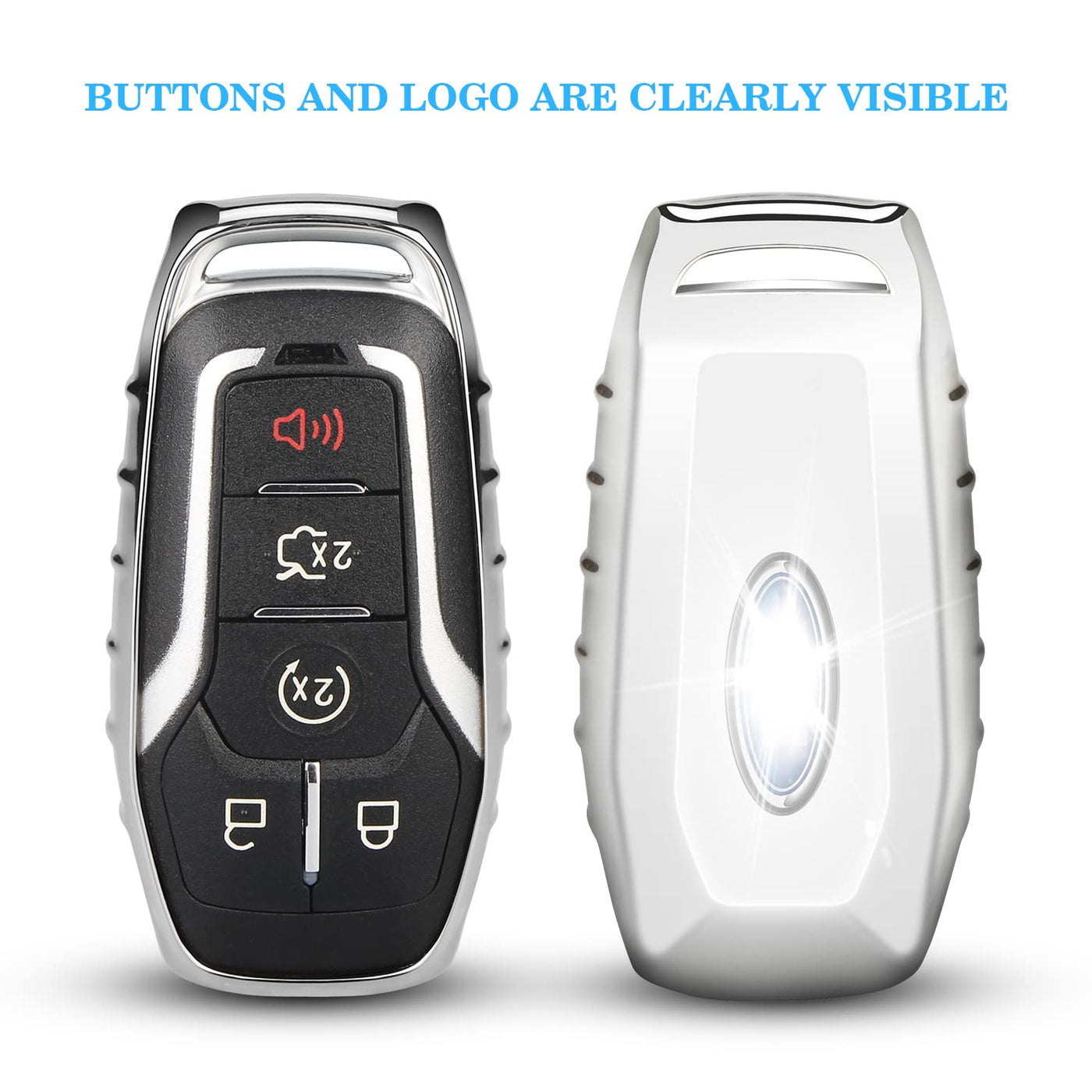 Qbuc For Ford Key Fob Cover,Tpu Car Key Case Protector With Keychain Compatible With Ford Fusion F-150 Edge Explorer Mustang Lincoln Mkz Mkc 2/3/4/5 Buttons Smart Key(Silver)