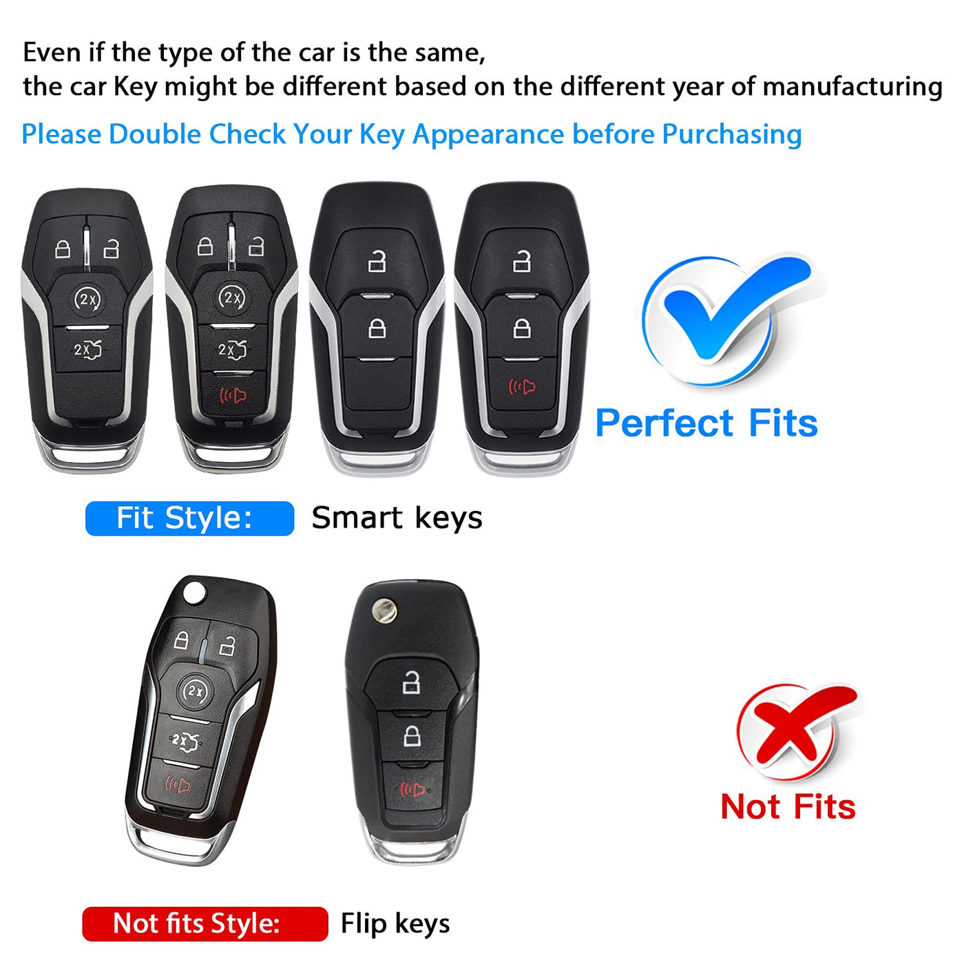 Q: Is the QBUC key fob cover compatible with all Ford models?A: The QBUC key fob cover is specifically designed to fit Ford models such as Fusion, F-150, Edge, Explorer, Mustang, Lincoln MKZ, and MKC with 2/3/4/5 button smart keys. Please ensure your key fob appearance matches the listing images before purchasing.