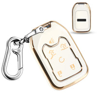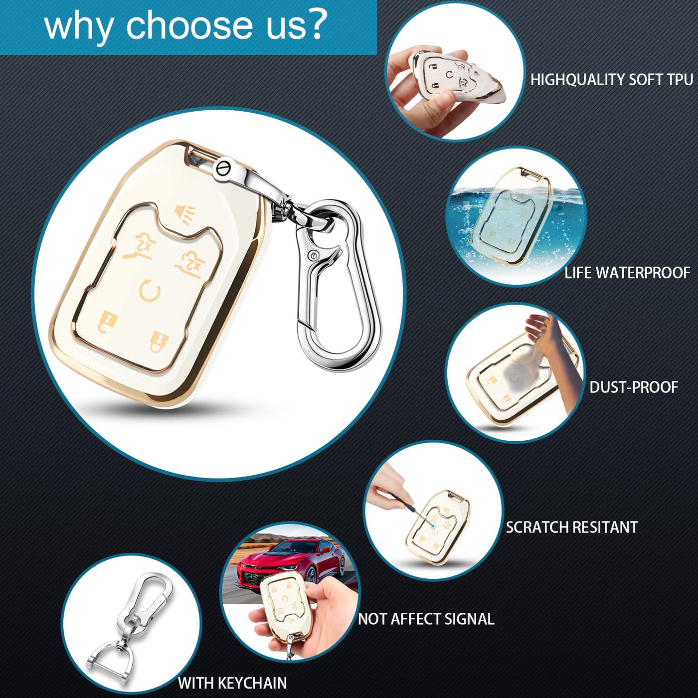 Qbuc For Gmc Key Fob Cover Tpu Protector Case With Keychain For 2019-2021 Chevrolet Chevy Silverado And Gmc Sierra 1500 2500Hd 3500Hd Terrain Acadia Yukon Key Cover Smart Remote 3/4/5/6 Button(White)