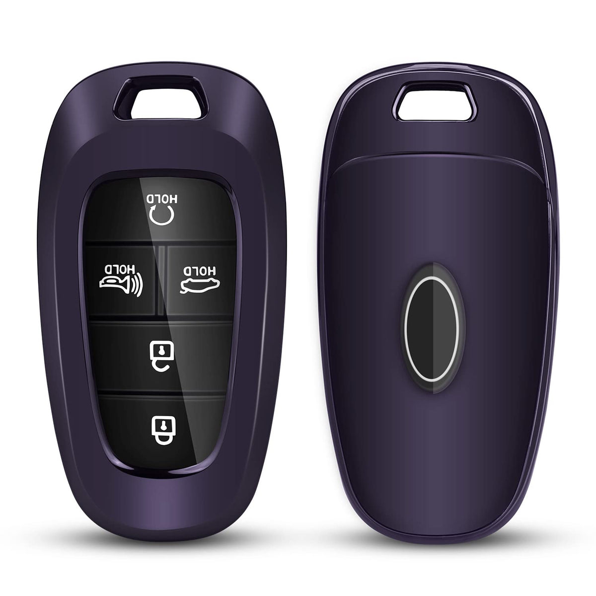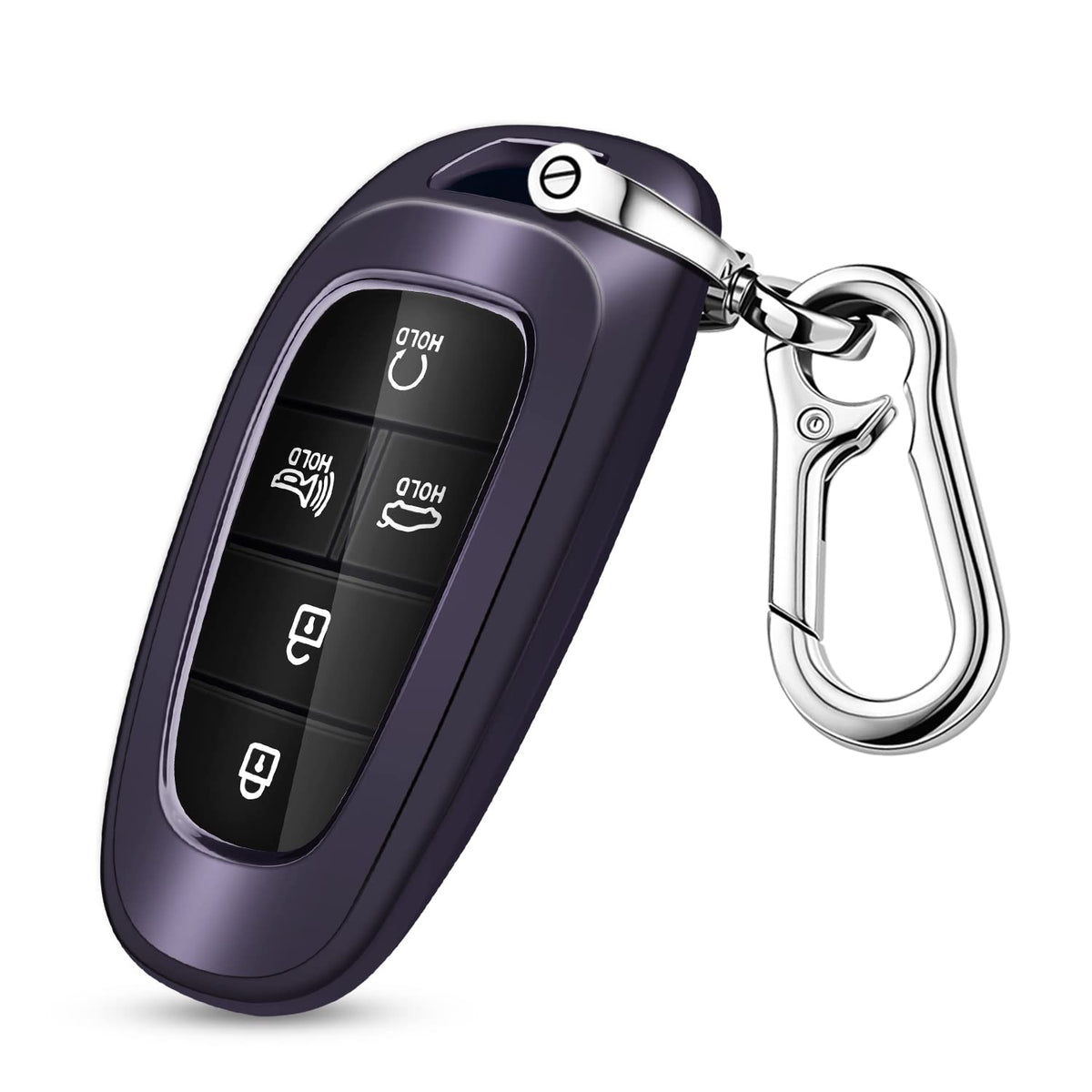 Qbuc For Hyundai Key Fob Cover,Tpu 360 Degree Car Key Case Protector With Keychain Compatible With 2022 2021 2020 Hyundai Sonata Santa Fe Tucson Keyless Entry 3/4/5/7 Buttons Smart Key(Purple Black)