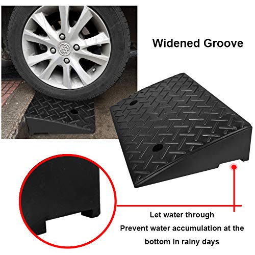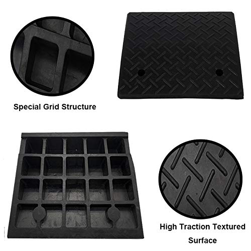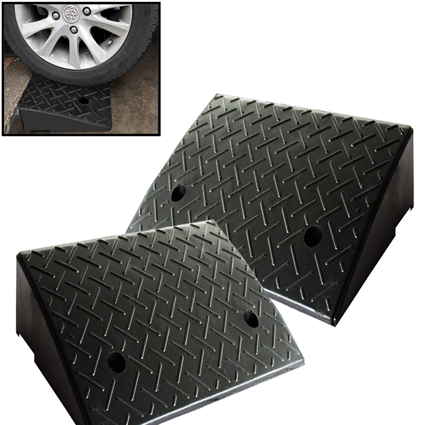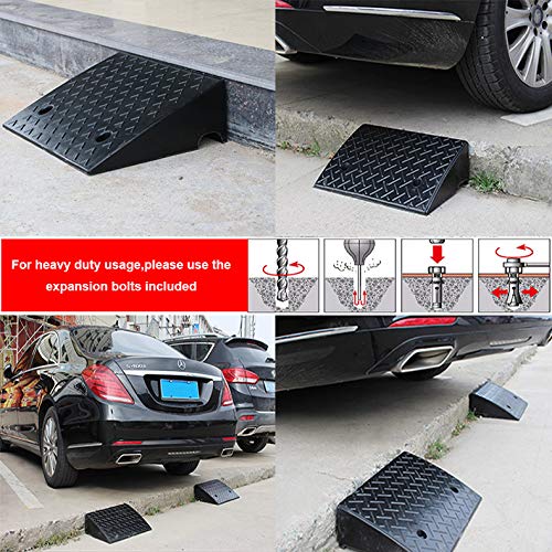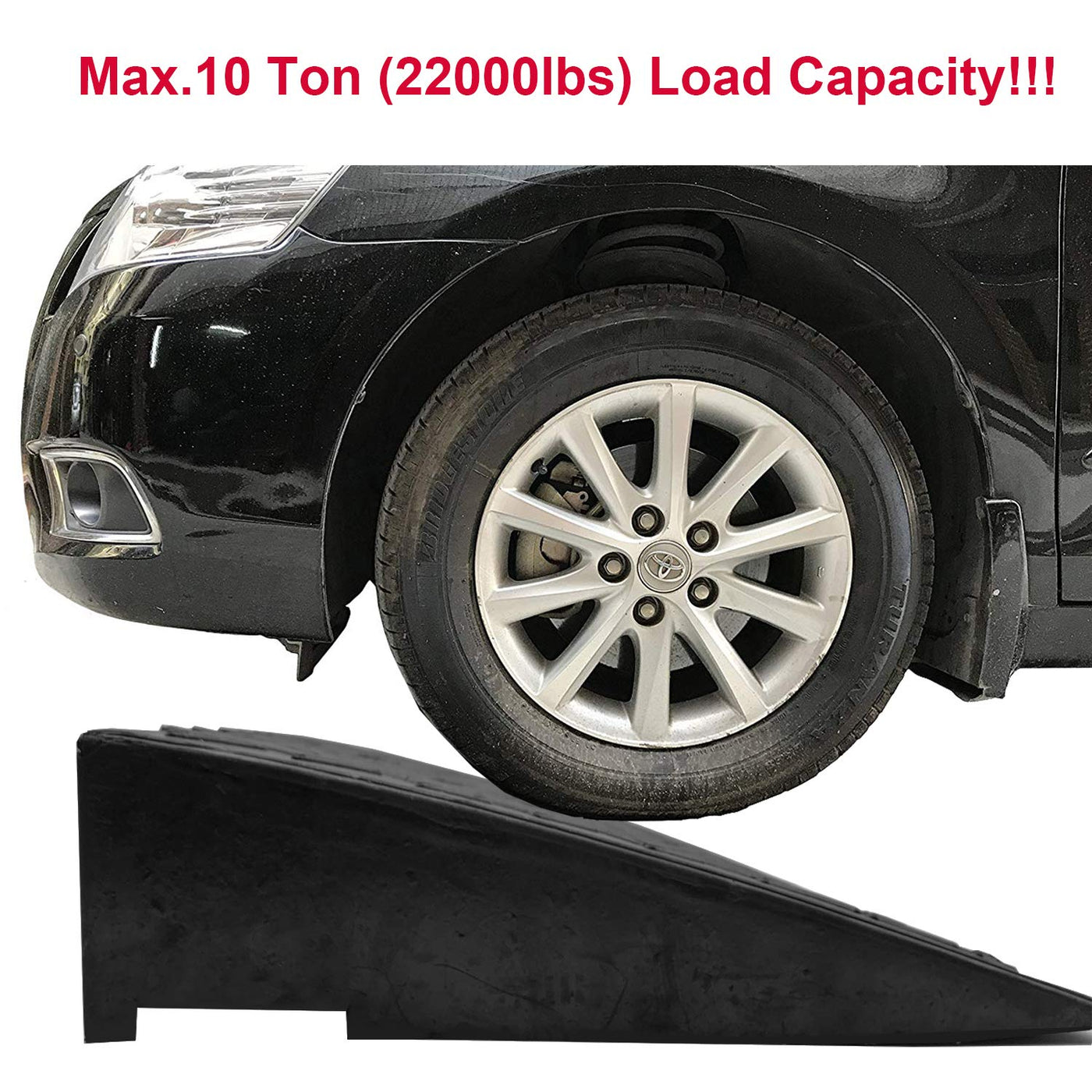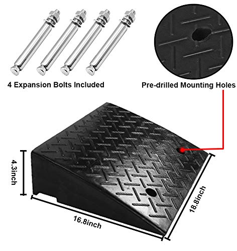 Features: Reasonable slope,ideal for loading docks and uneven surfaces up to 4.3' rise Constructed of reinforced rubber with high strength,durable,resistant to ultraviolet light, oil,solvents,gas,the elements and extreme temperatures Marine grade waterproof-rated construction Strong high-density rubber with a 44000 lb capacity for commercial or industrial warehouse application High traction with a grooved surface works great in all weather conditions 2 pre-drilled 1/2'D holes with a 1' recess for optional permanent mounting Each package comes with 4 expansion bolts for helping you install. Combine multiple curb ramps together to create your own custom ramp for specific applications. Special grid structure at the base makes our curb ramp more stable and not easy to move The groove at the base of each curb ramp can let water through Great for vehicles,forklifts,buses,mowers,wagons,fire truck,commercial vehicle,excavators,SUV,RV,trailer and other heavier equipment,also great for bicycles,hand trucks or lawn and garden equipment. Suitable for loading docks,parking lot, curbs,driveway,shed entrances,supermarkets,factories,warehouse,schools and other high traffic areas