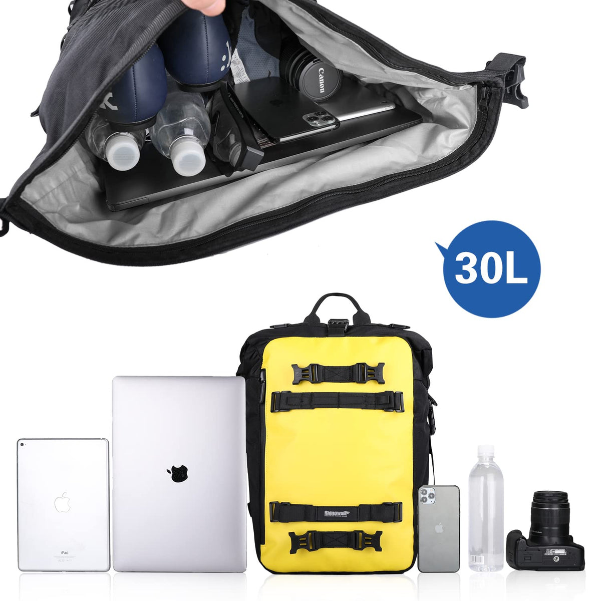 Rhinowalk Motor Pannier Bag 10/20/30L Multifunctional Waterproof Rear Rack Trunk Motorcycle Seat Bag (Yellow-30L)