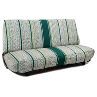 Q: What makes the Seat Covers Unlimited bench seat cover different from other seat covers?A: The Seat Covers Unlimited bench seat cover stands out due to its one-piece design, which simplifies installation and ensures a snug fit. Made from high-quality, durable polyester, it offers superior protection against spills, stains, and wear while enhancing your vehicle's interior with its stylish green color and classic Southern Saddle Blanket pattern.
