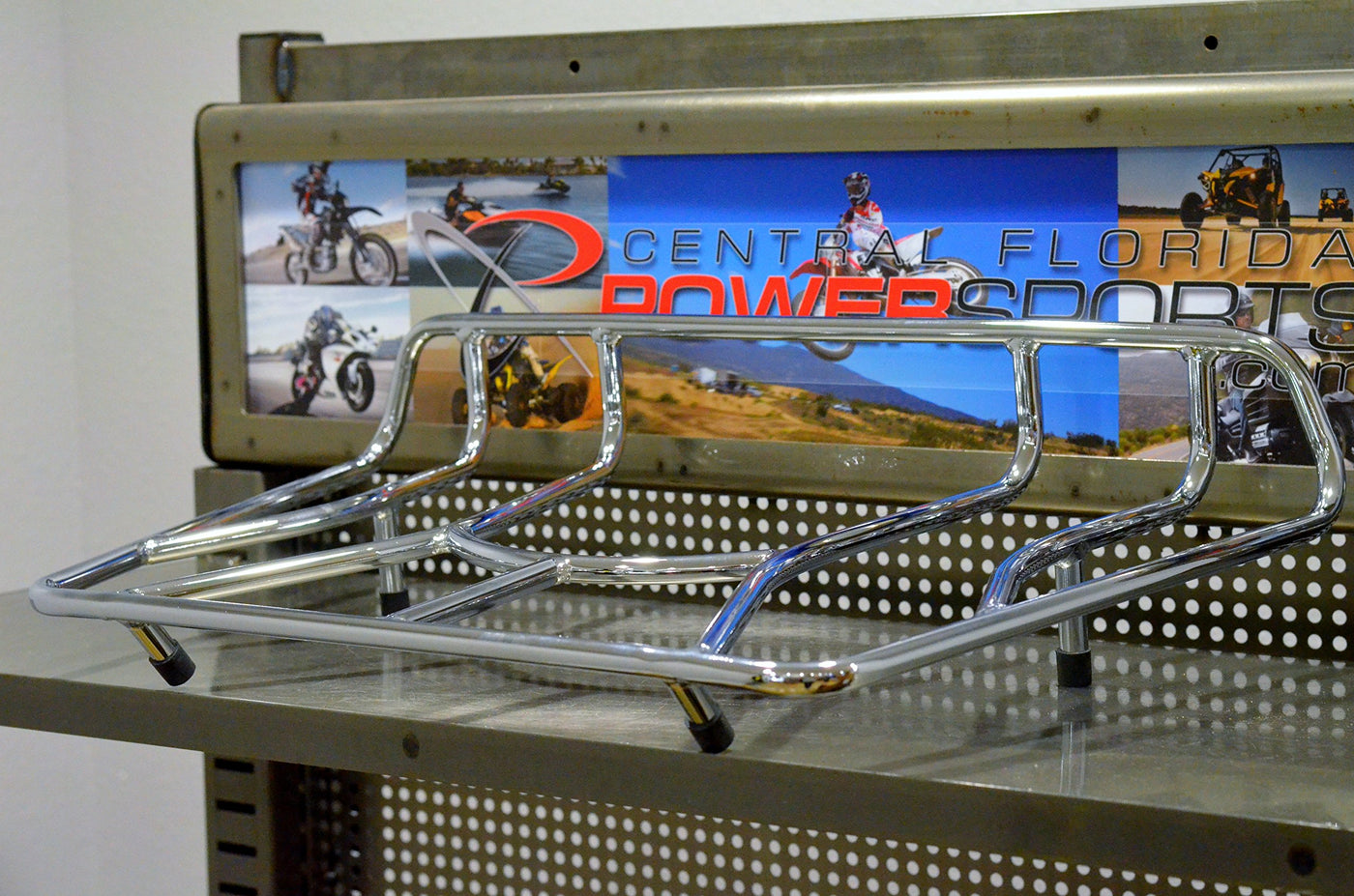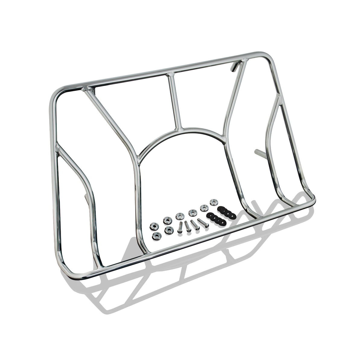 This all new tubular luggage rack is a generous 22-1/2 inches x 13-1/2 inches to accommodate standard luggage bags. Including Big Bike Parts own 4-603 touring luggage bag or H50-106BK deluxe rack bag. Mounts with four custom tapered washers for inside and outside the trunk lid to protect your trunk lid. With a rich chrome finish to accent your Can-Am and allow you to bring more personal items then before. Fits Can-Am Spyder RT.