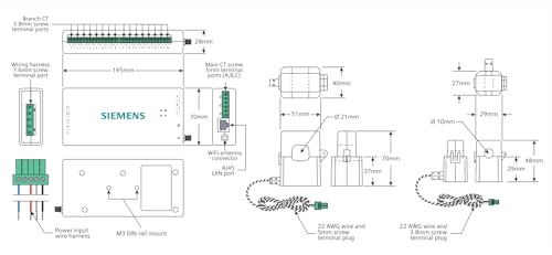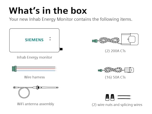 SIEMENS Inhab Smart Home Energy Monitor with 16-50Amp Circuit Level Sensors and 2-200Amp Main Sensors for Real Time Electricity Monitoring and Metering