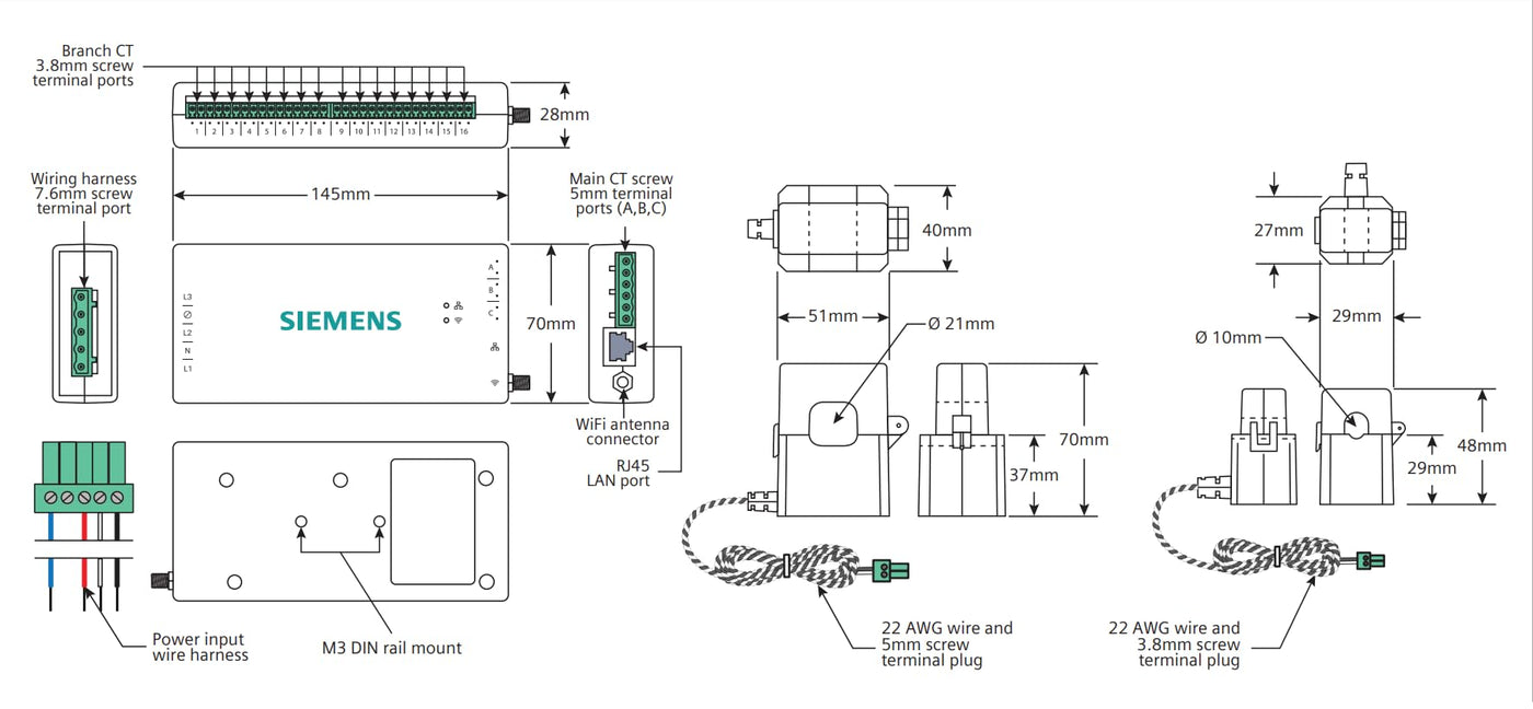 The Siemens Inhab Energy monitor installs in common electrical panels to send usage and production data to the cloud and mobile app. It reports how much energy is being used or generated in real time to reduce unnecessary consumption. The Inhab Energy Monitor doesn't rely on assumptions about your appliances; it directly connects to the circuits that matter most to you, such as your furnace, air conditioner, refrigerator, washer, and EV charger. No algorithms, no guessing, and no waiting, the Inhab Energy Monitor gives you up-to-the-minute information on your energy usage. Start your smart living journey with the Inhab Energy Monitor! Product includes energy monitor, wire harness, 2 x 200A CTs, 16 x 50A CTs, WiFi antenna assembly, 2 x wire nuts and splicing wires.