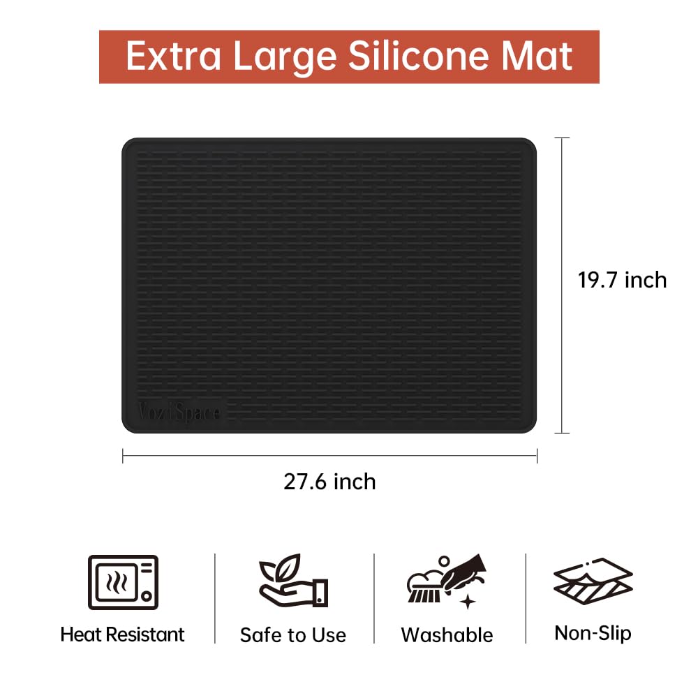 Silicone Electric Stove Top Cover Mat - 28'X20'Ceramic Stove Top Cover, Heat Resistant Glass Cooktop Cover, Flat Rv Range Stovetop Protector, Extra Large Silicone Dish Drying Mat - Black