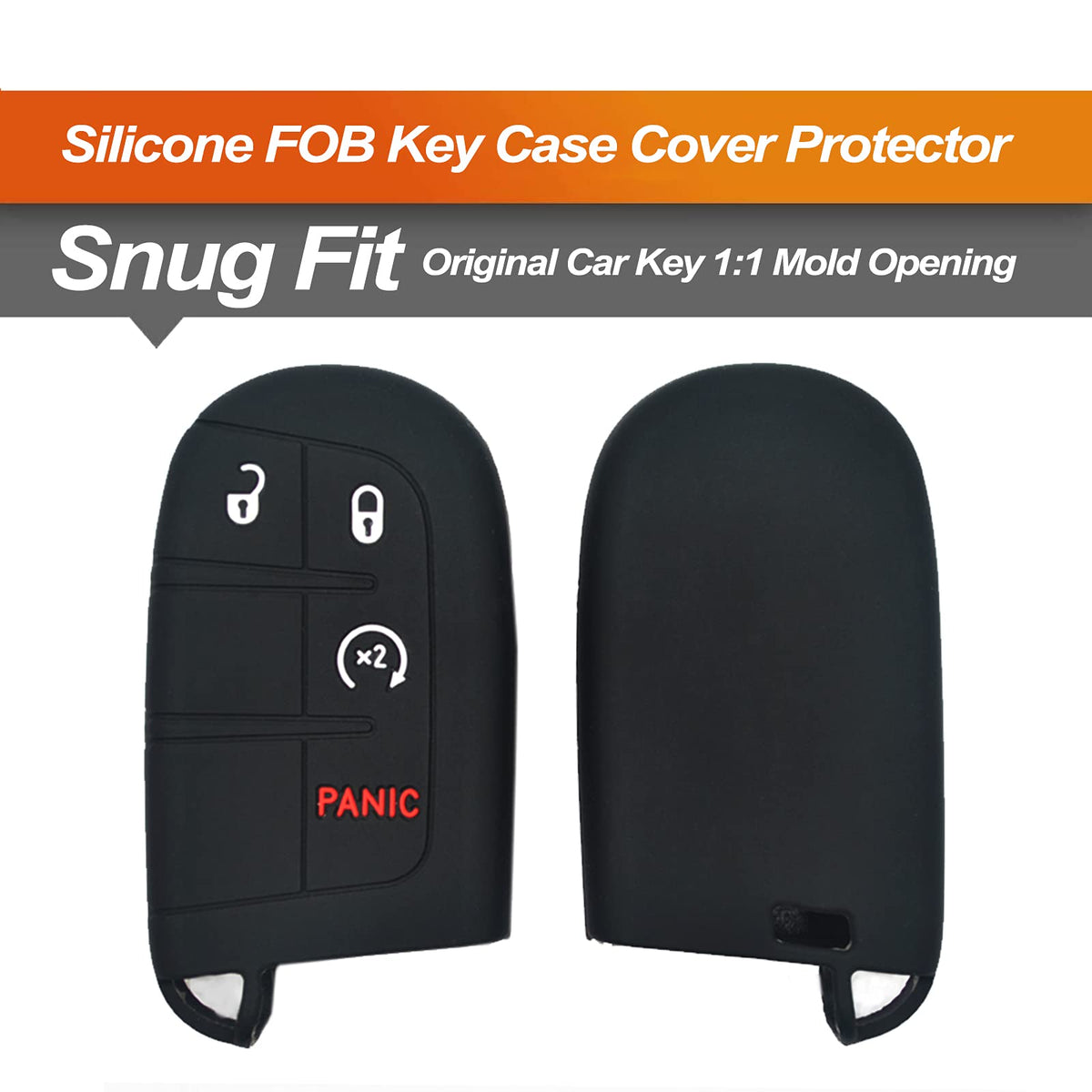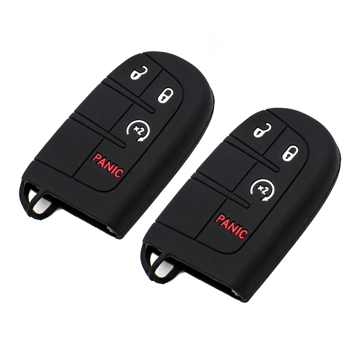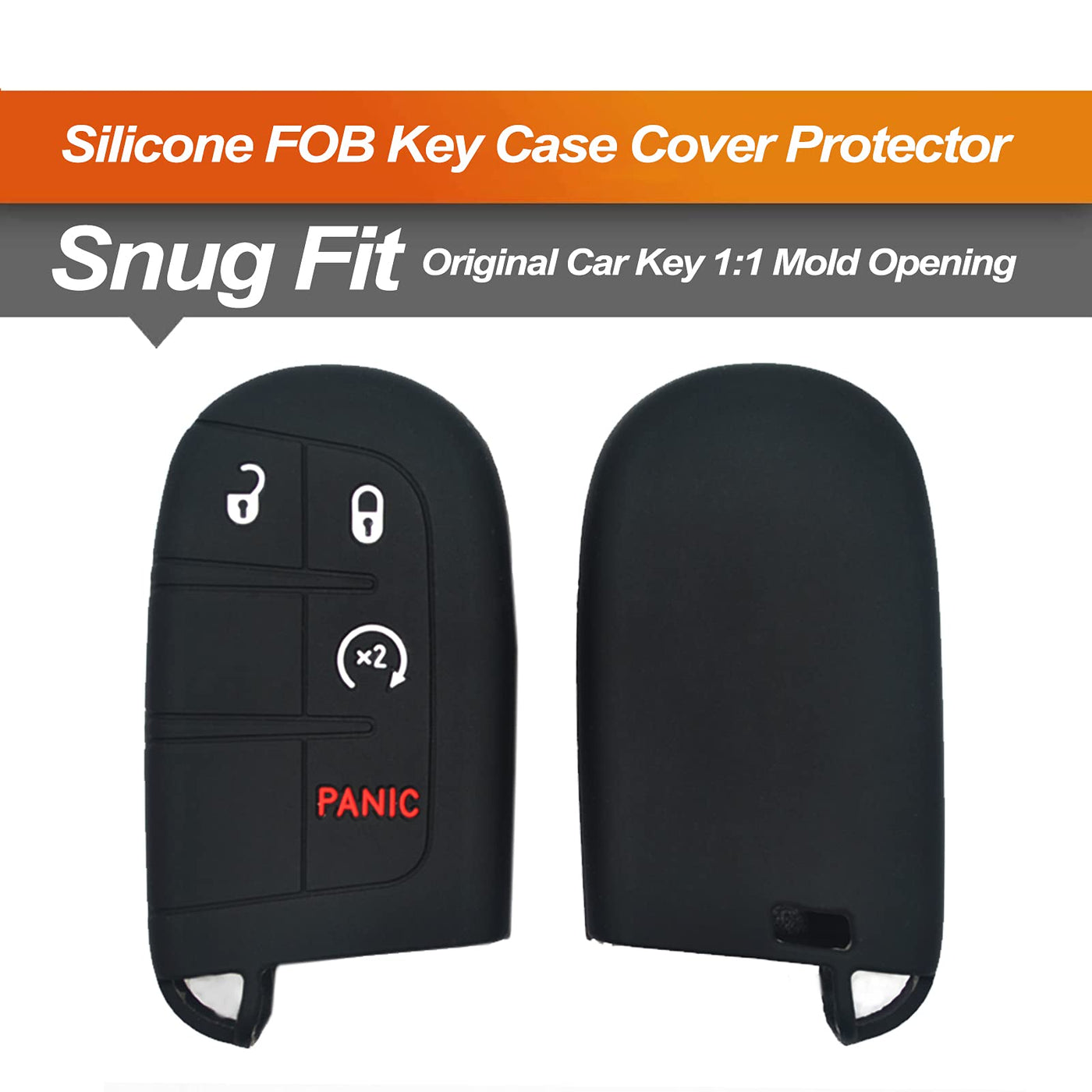 Performance: Please visually compare your existing remote or key with 2nd image to ensure proper fitment. Easy to install, simply slide the car key protective holder over your existing key. No tool is required. Instantly improve the appearance of your remote control fob key. Prevent scratches, personalize & beautify your key. Precisely designed key fob cover made with premium quality silicone. Unqiue colors help you find your fob when you have laid it somewhere. Please note: there may be a slight color difference under different light and monitor. Compatible with: Fit for Dodge Durango Journey Dart Challenger Jeep Compass Renegade Grand Cherokee Fiat 500X Chrysler Smart 4 Bts Package Included: 2 x Silicone Key Cover, Black Color