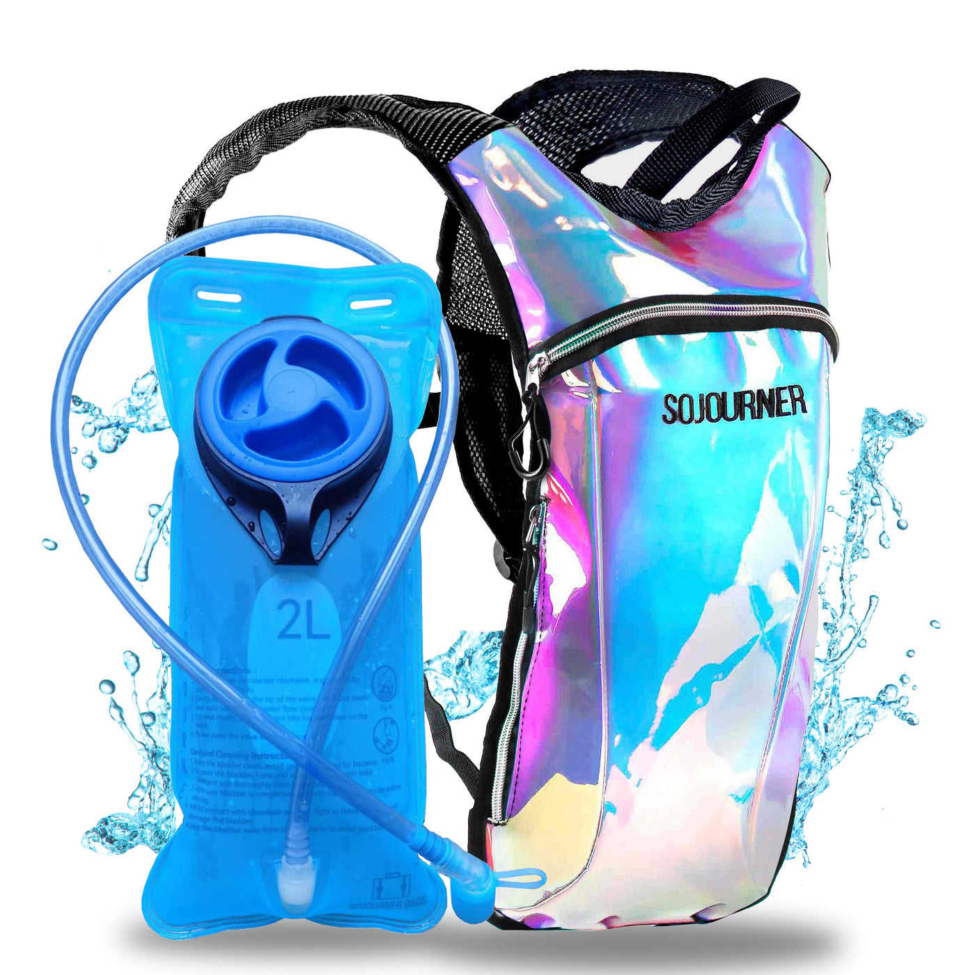 Sojourner Hydration Pack Backpack - 2L Water Bladder Included For Festivals, Raves, Hiking, Biking, Climbing, Running And More (Iridescent - Blue)