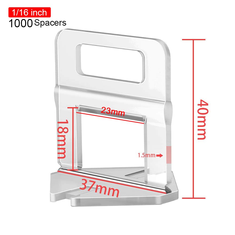 Storystore Tile Leveling System - 1000 Piece Tile Leveling Clips 1/16", Tiles Spacers Leveling System Diy For Professional Ceramic Tile And Stone Installation