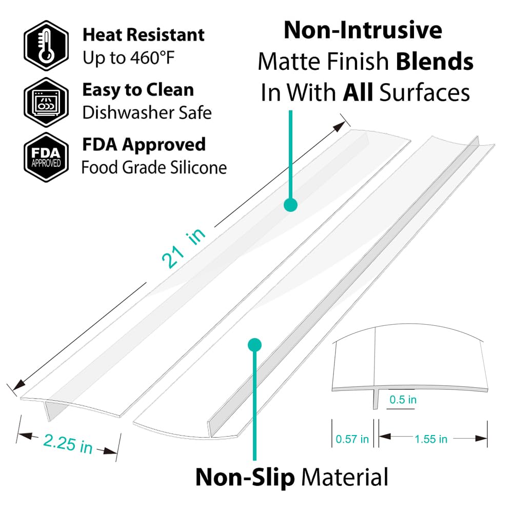 Stove Counter Gap Cover, 2Pack Kitchen Silicone Oven Gap Filler – 21 Inches Countertop Strips Gap Guard, Easy To Clean (Clear)