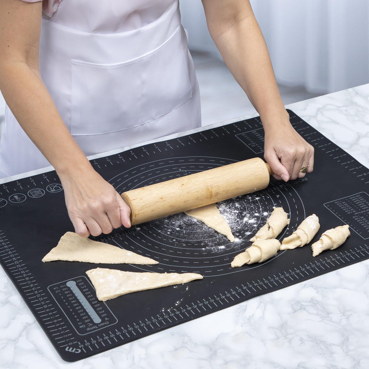 Q: Can I use both sides of the silicone stove mat?A: Absolutely! The double-sided design allows you to use one side for protecting your stove and the other for food preparation with measurements and guides.