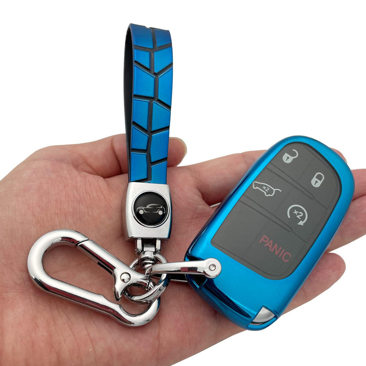 Tandrive Key Fob Cover Compatible With 2025 2024-2015 Jeep Compass Dodge Durango Cherokee Grand Cherokee Renegade Challenger Charger Ram Chrysler 300(3 4 5-Button, Blue)