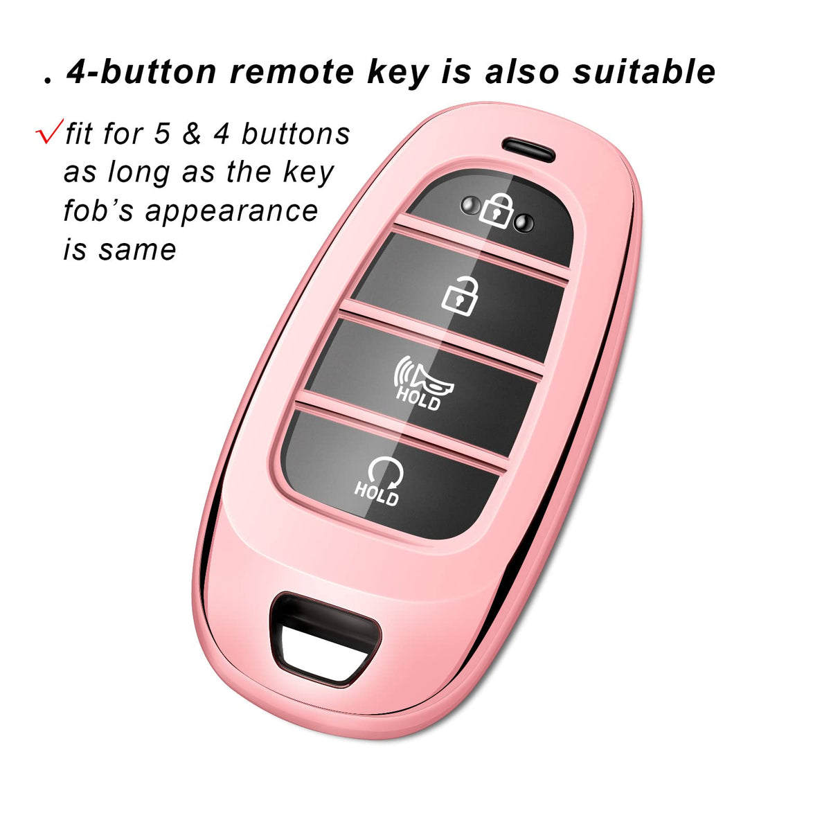 Tengare Car Key Fob Cover Compatible With Hyundai Key Case Pink Protector Keychain Holder