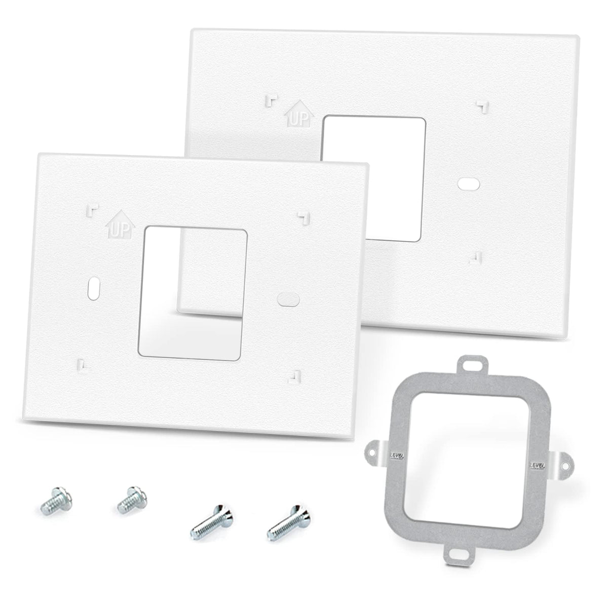 Q: How do I install the thermostat wall plate?A: To install the thermostat wall plate, first disconnect the power. Remove the existing thermostat from the wall, unfasten the wires, and unscrew the mounting plate. Then, place the new cover plate over the electrical box, align the mounting plate with the cover plate, and reconnect everything. For detailed instructions, refer to the installation manual included with the product.