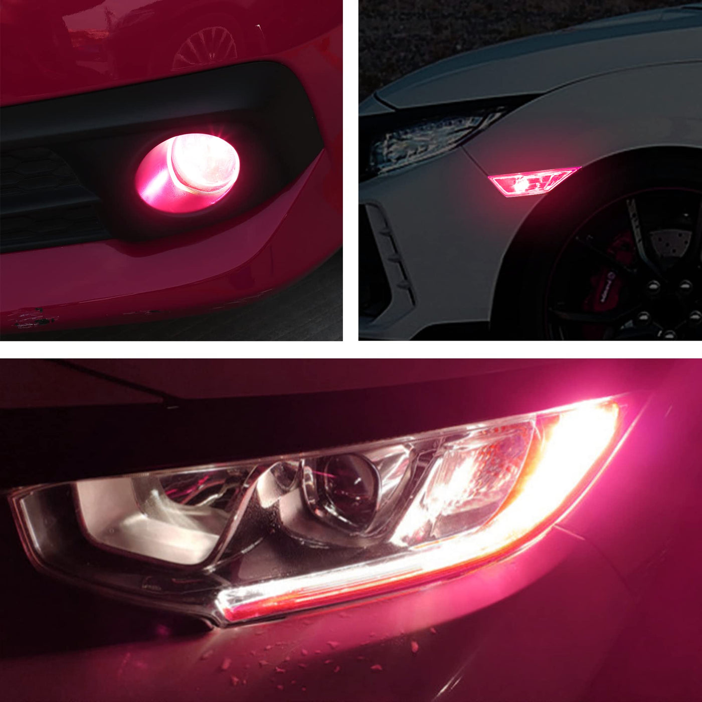 TOMALL 3 Pair Vinyl Smoke Tint Fog Light Headlight Side Marker Light Film for Honda Civic 2016-2021 Fender Turn Signal Light Stickers Self Adhesive Decals Car Vinyl Smoke Stickers Decoration (Pink)