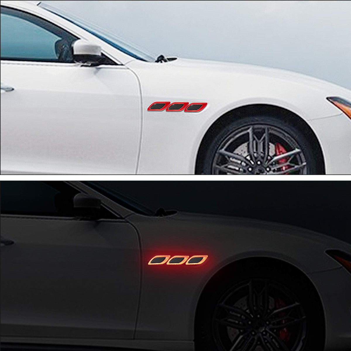 Tomall 6Pcs 3D Strong Reflective Stripe Sticker For Car Fender Hood Bumper High-Intensity Night Visibility Reflective Decal Safety Warning Diamond Grade Carbon Fiber Universal For Car Suv (Red)