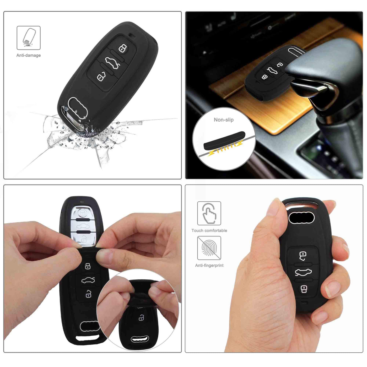 Non-Slip: Silicone Key Cover Has Good Anti-Slip Properties. After Installing The Silicone Key Case, Even If The Car Key Is Placed In The Center Console Or In A Smooth Place, The Car Can Be Well Fixed In One Place When Driving, Avoiding The Key Falling When The Car Is Driving.