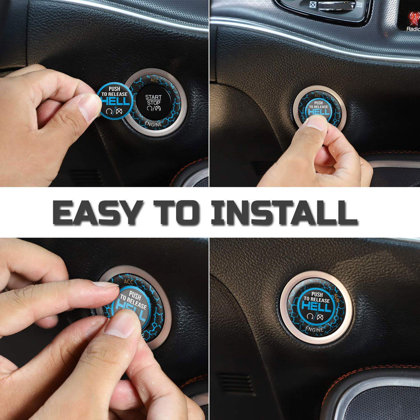 Toolepic For Dodge Ram 1500 Challenger Charger Durango Accessories 2015-2024 - Engine Start Stop Button Overlay Baby Blue Sticker Emblem - Push To Release Hell Badge Unique Style - Perfect For Decals