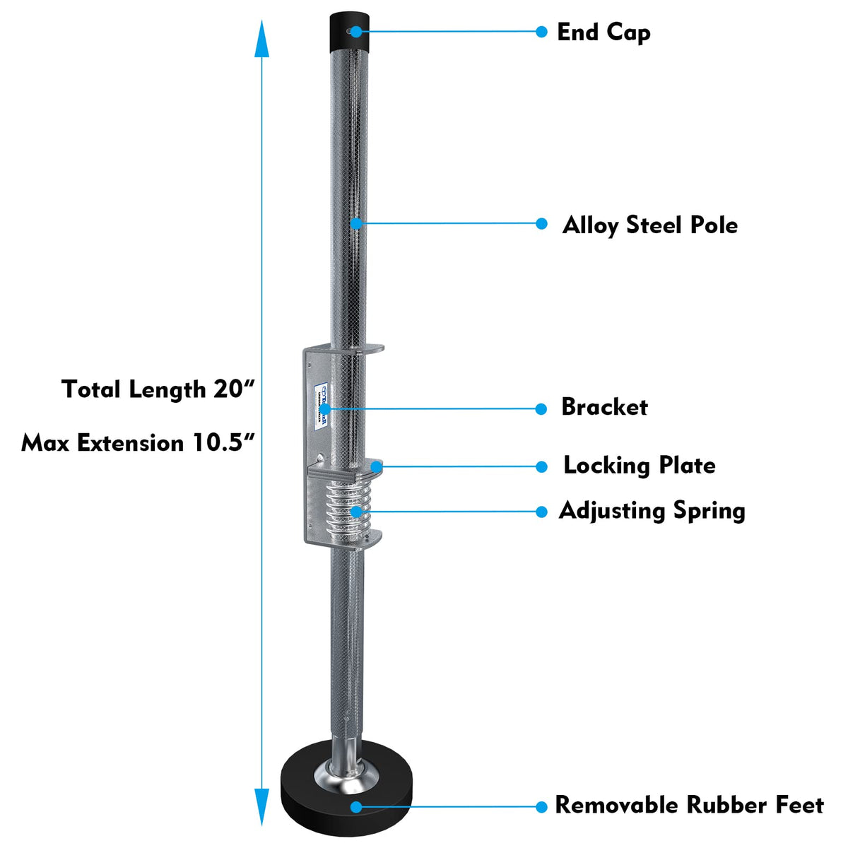 Specification: · Condition: Brand New · Material: high-quality alloy steel and natural rubber · Size: Length 22.4Inch · Maximum Extension: 13.3Inch · Weight: 3 lbs/pc · Load Capacity: Up to 400 lbs. Max