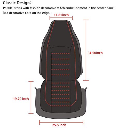 Aesthetics The classic black red, gray and blue color palette and the timeless strip design makes this front seat cover a perfect complement to any vehicle interior. Also, it's unisex, suitable for both men and women