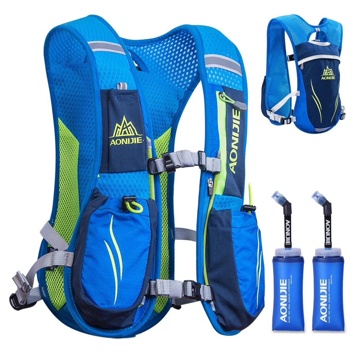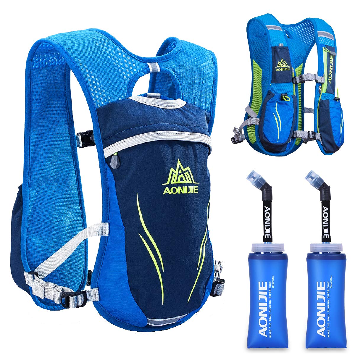 Triwonder Hydration Pack Backpack 5.5L Outdoors Mochilas Trail Marathoner Running Race Hydration Vest (Blue - With 2 Soft Water Bottles (350Ml))